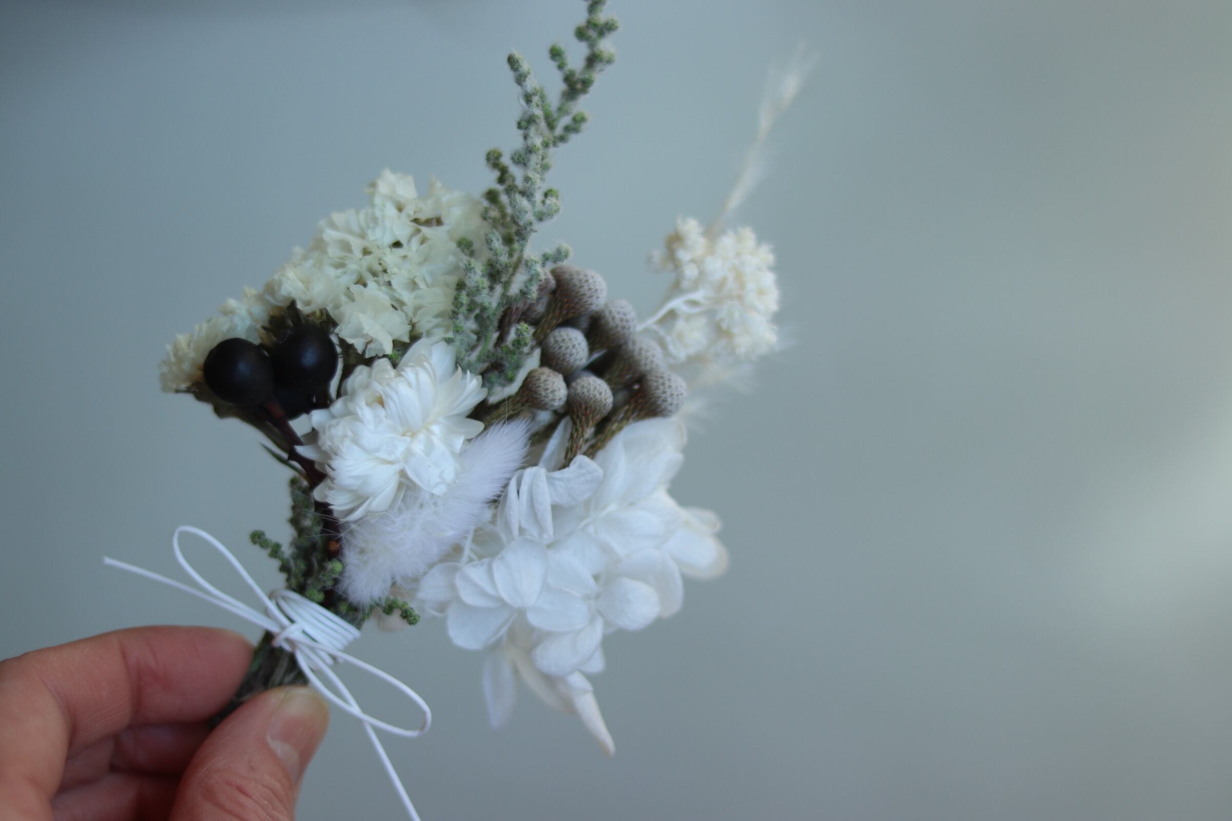 材料: 紫陽花、スターチス、シルバーブルニア