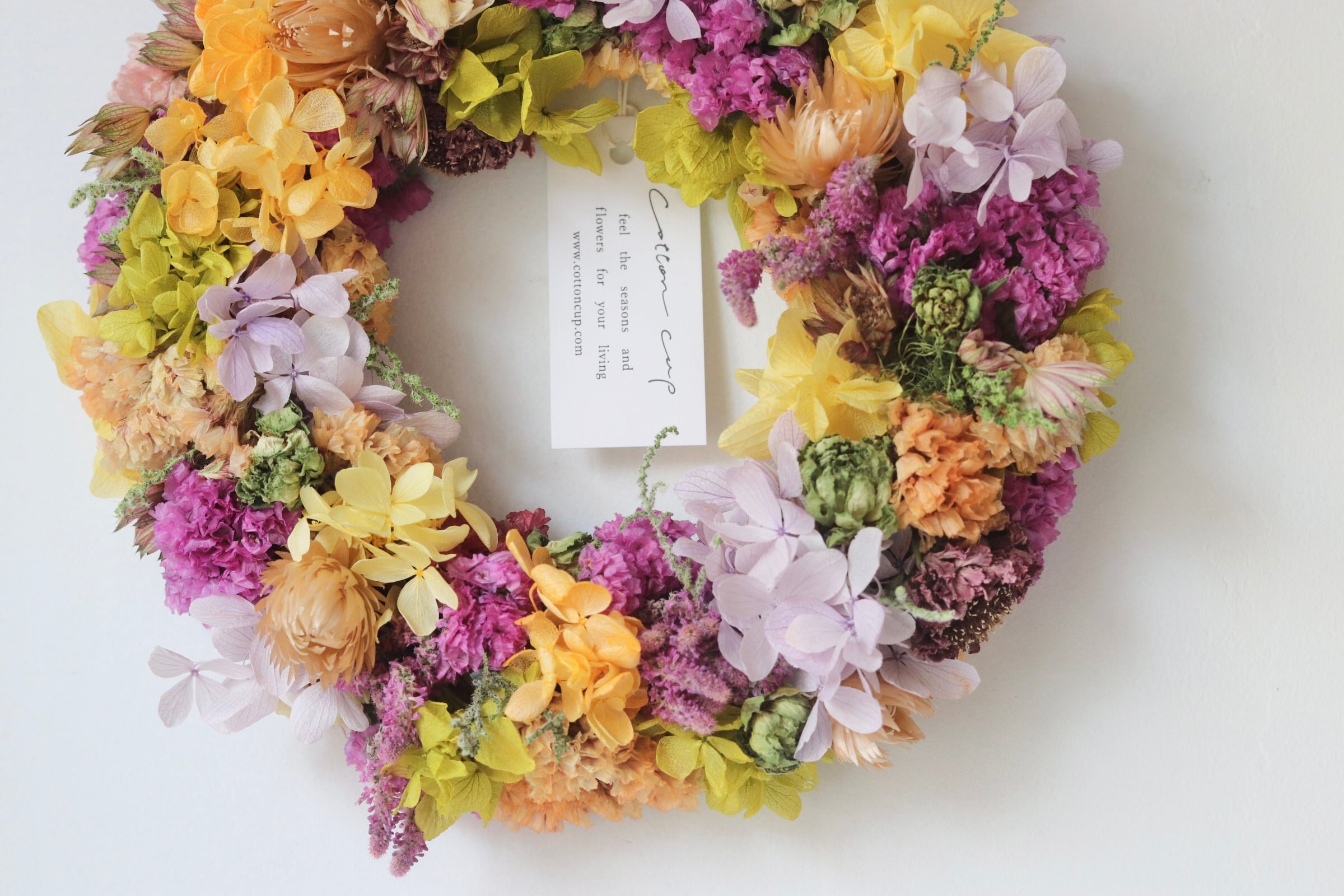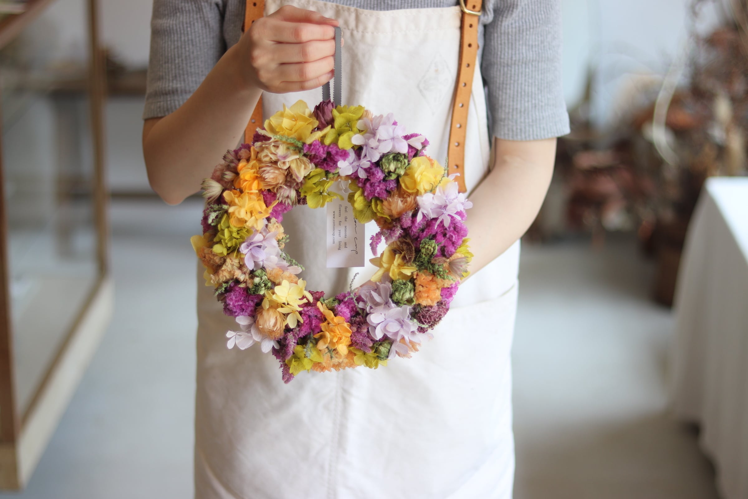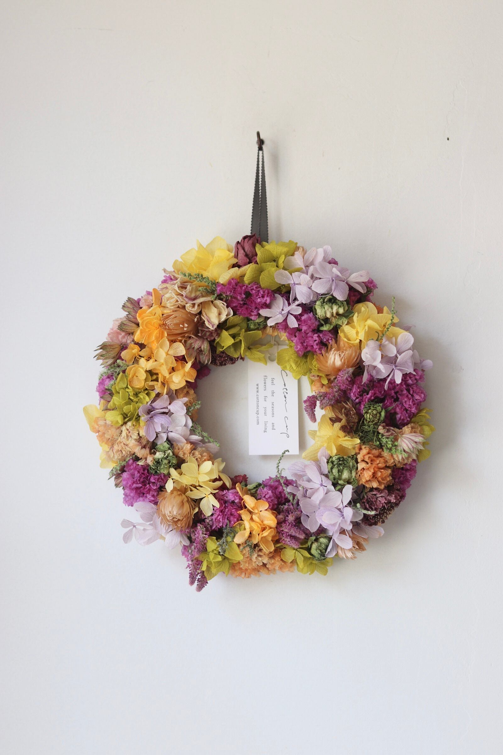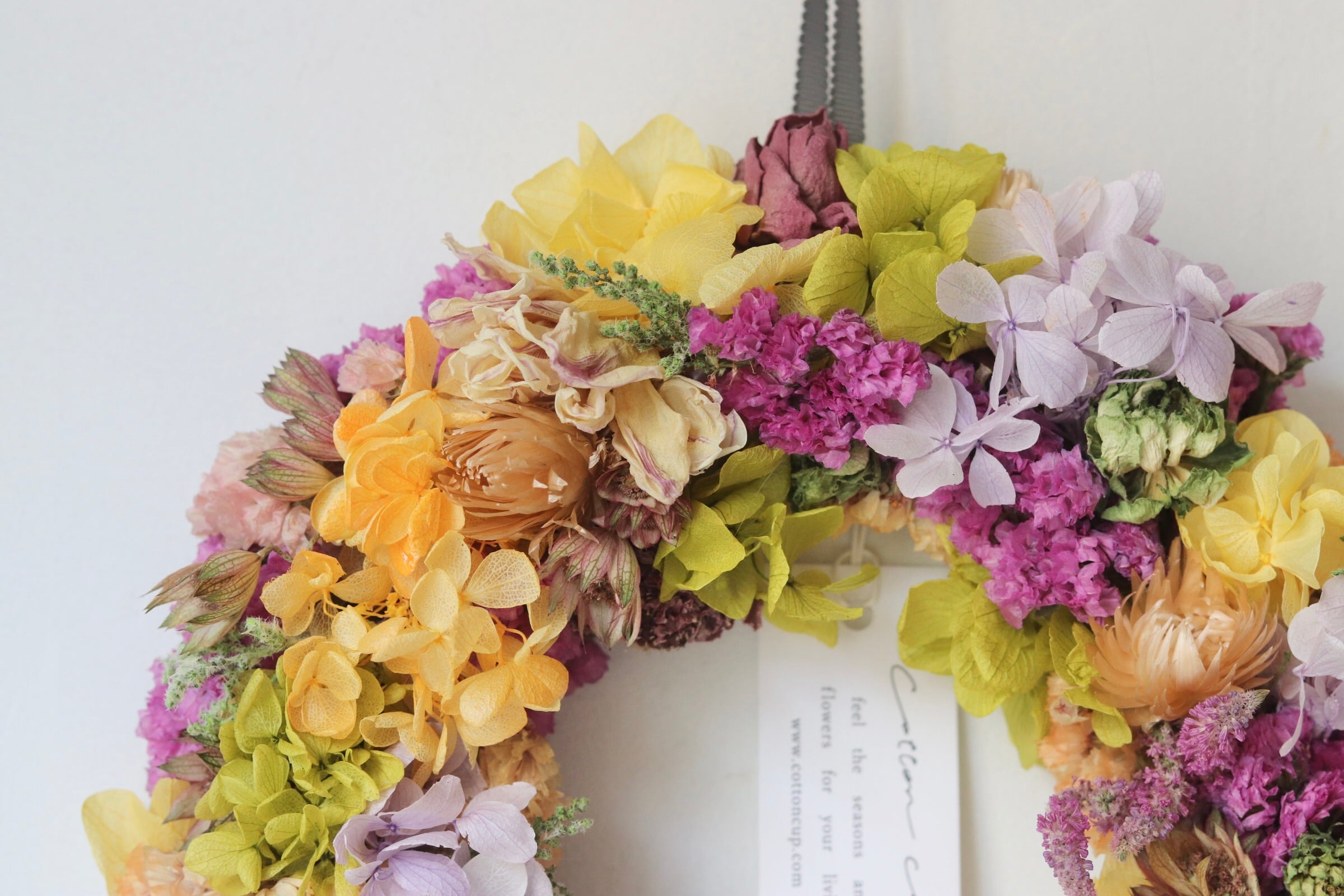 こちらはドライフラワーでお届けいたします。