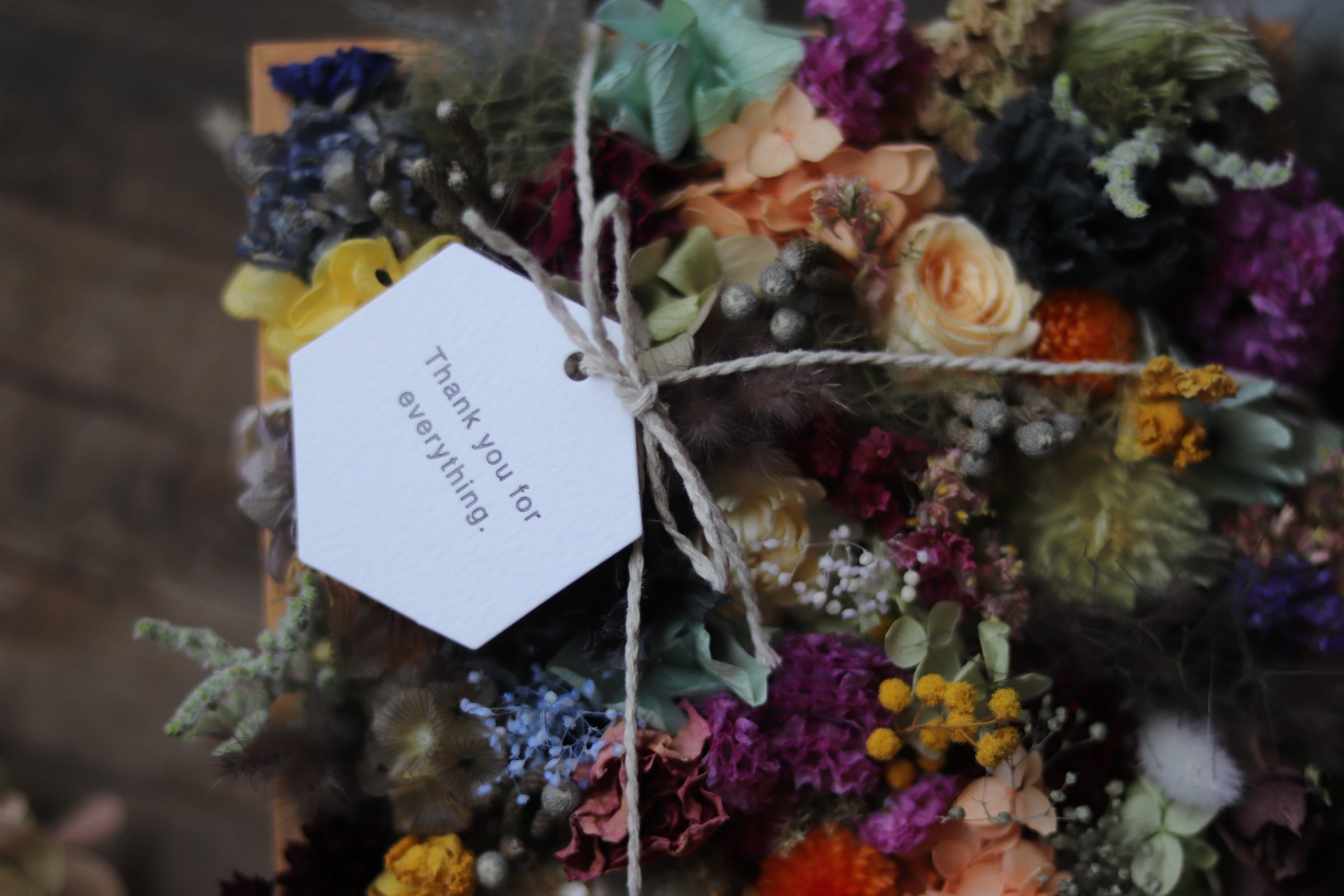 華やかさと温かみを持ち合わせたドライフラワーギフトです。 可愛らしいBOXにアレンジされたドライフラワーは、どんなお部屋にもマッチし、長く楽しんでいただけるのが魅力です。