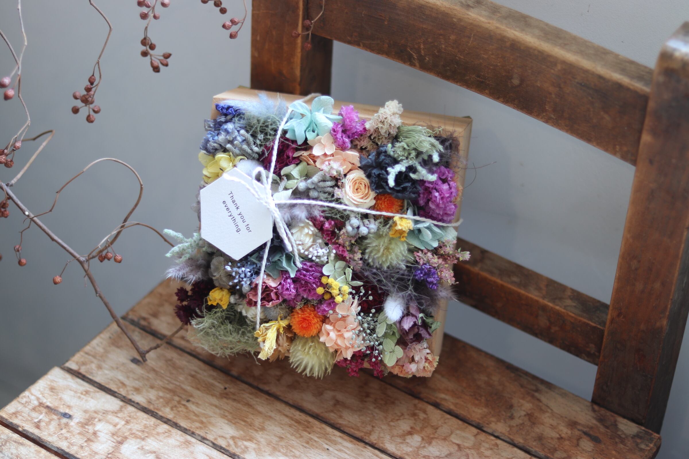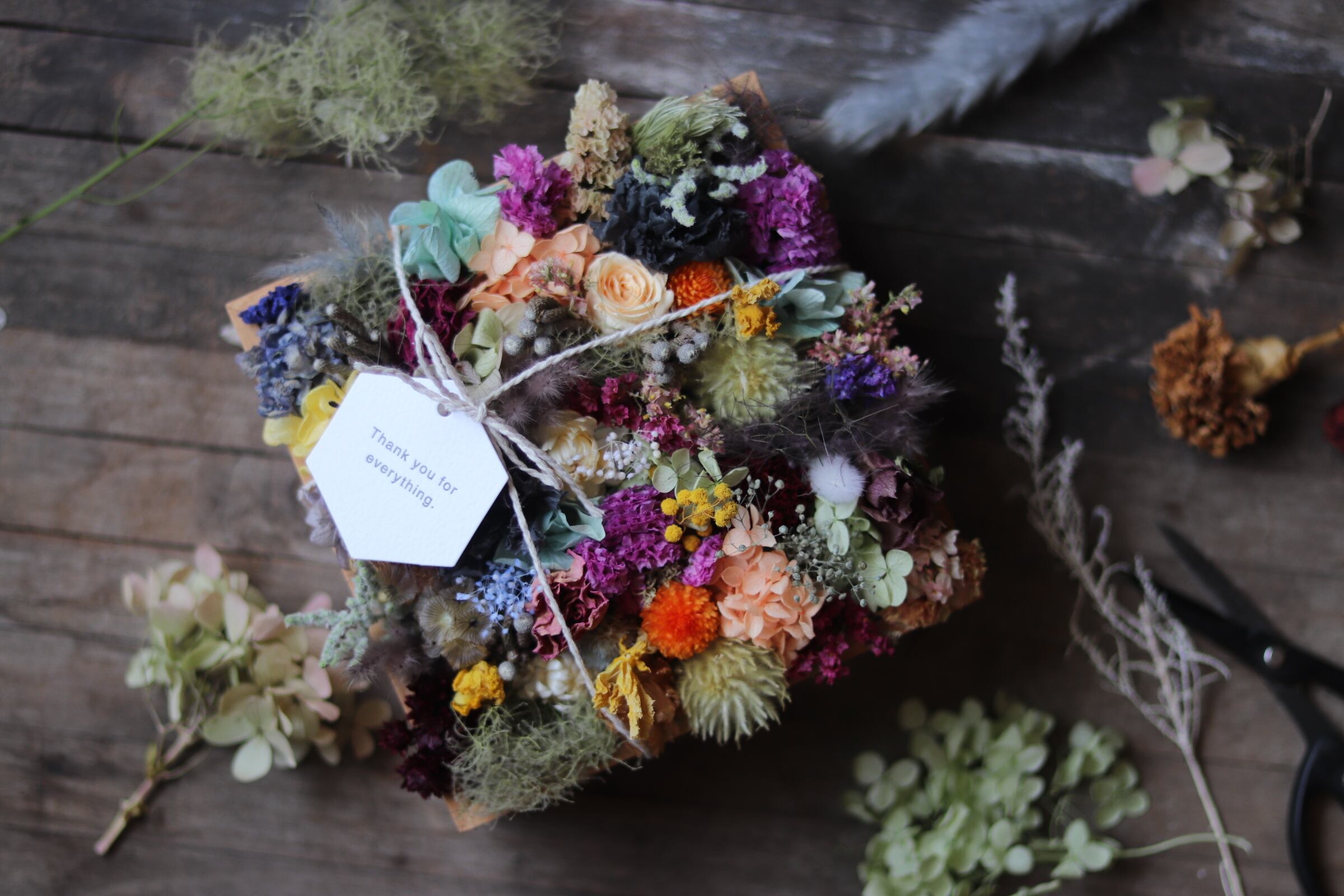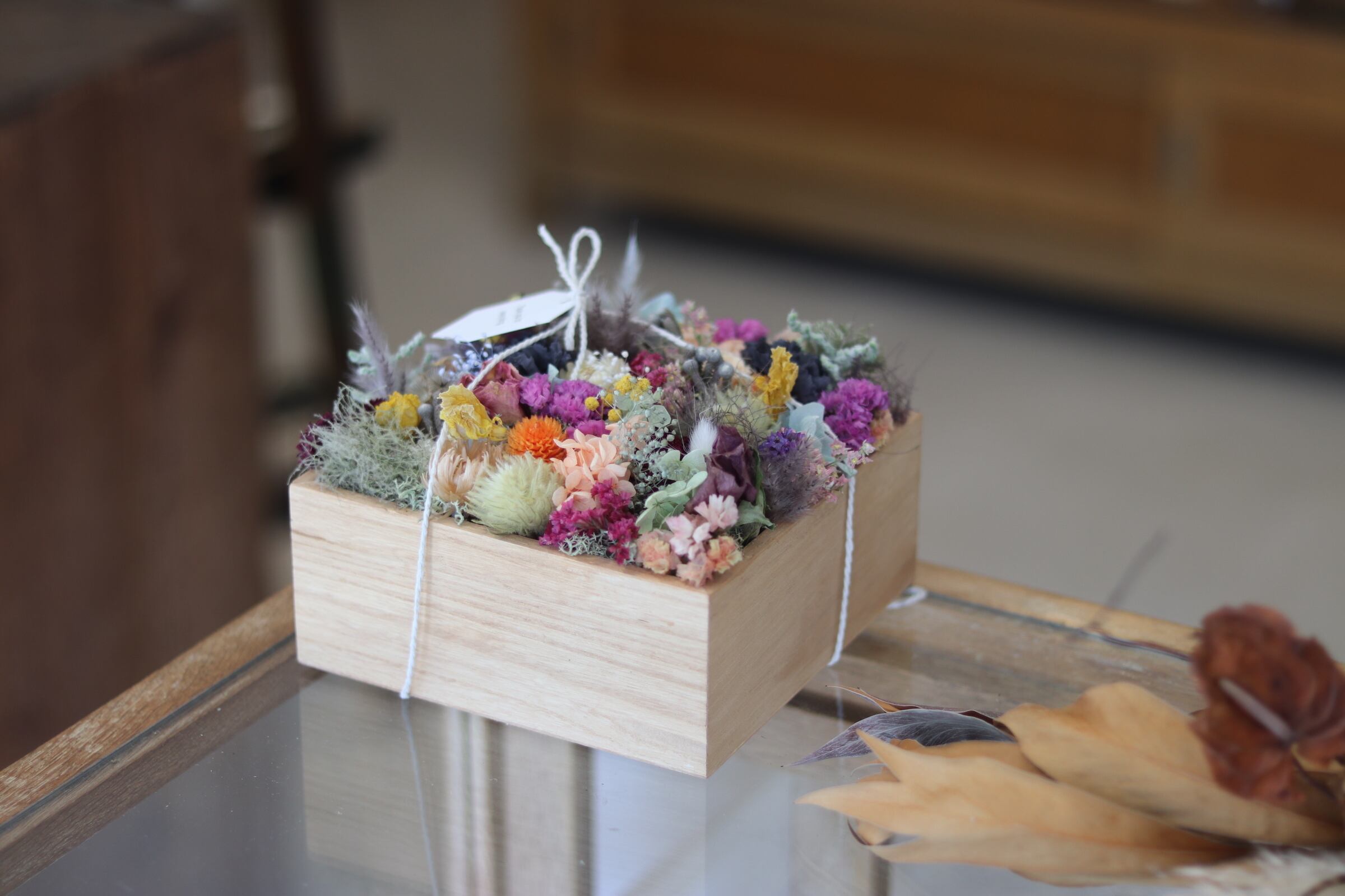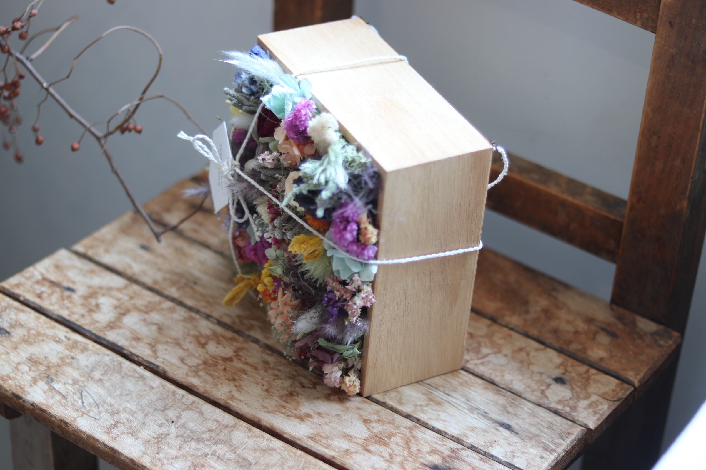 ドライフラワーをBOXに詰め込んだアレンジです。