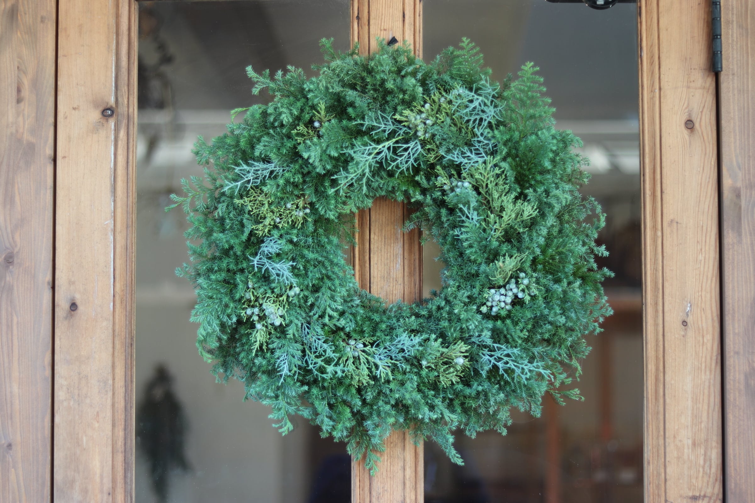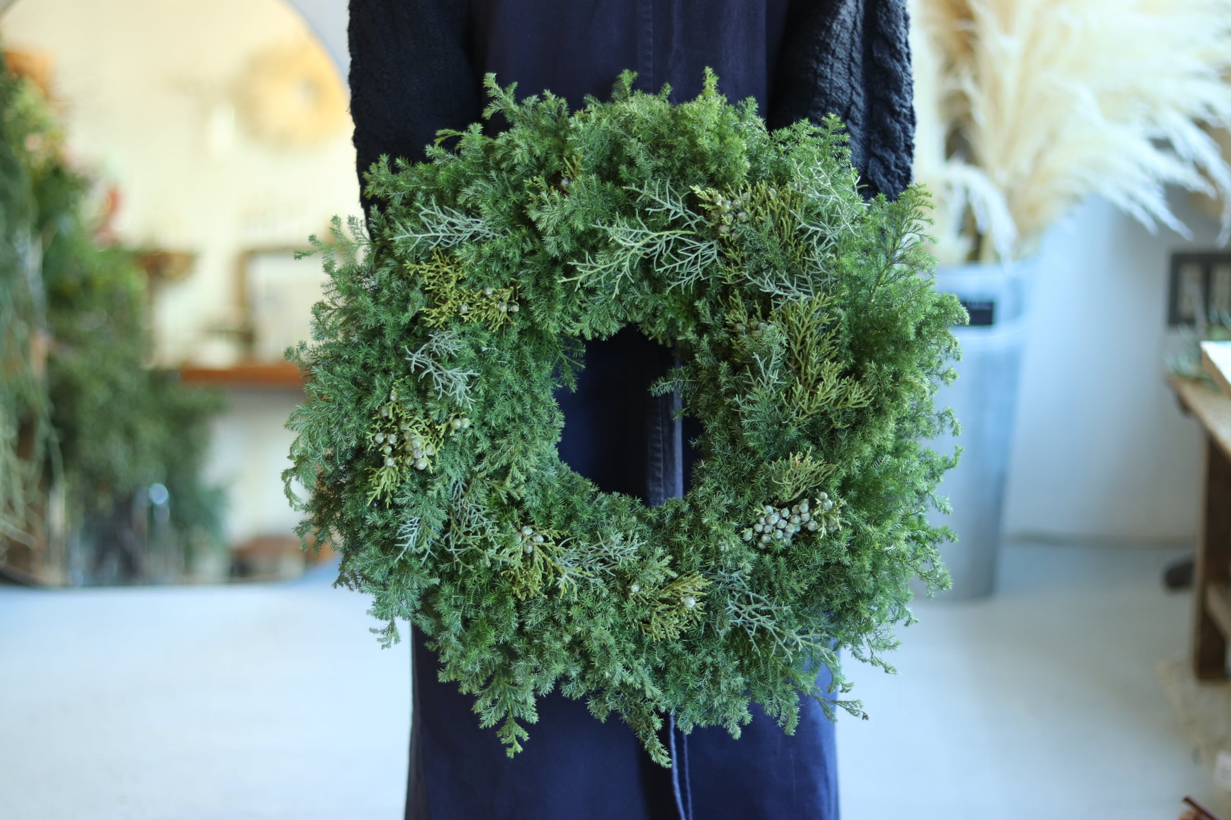 材料: ヒムロスギ、ブルーアイス、ネズ他
