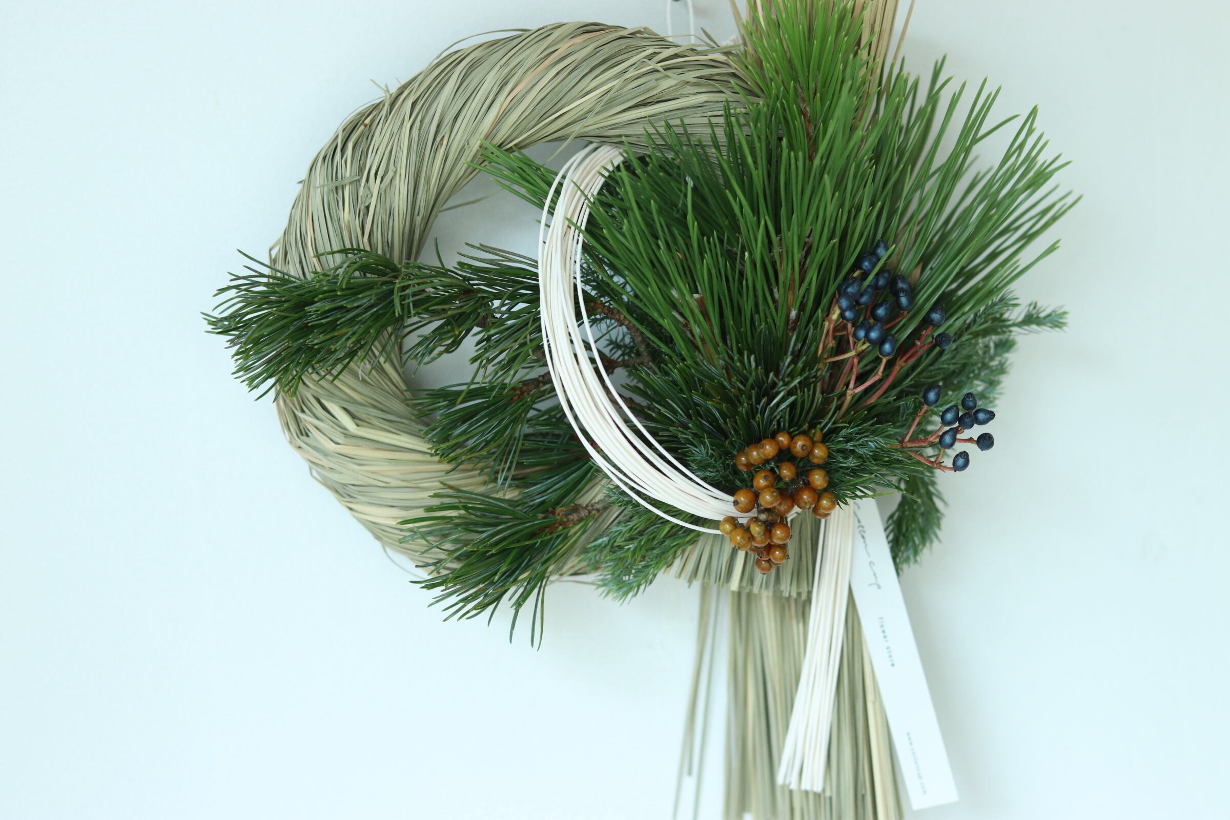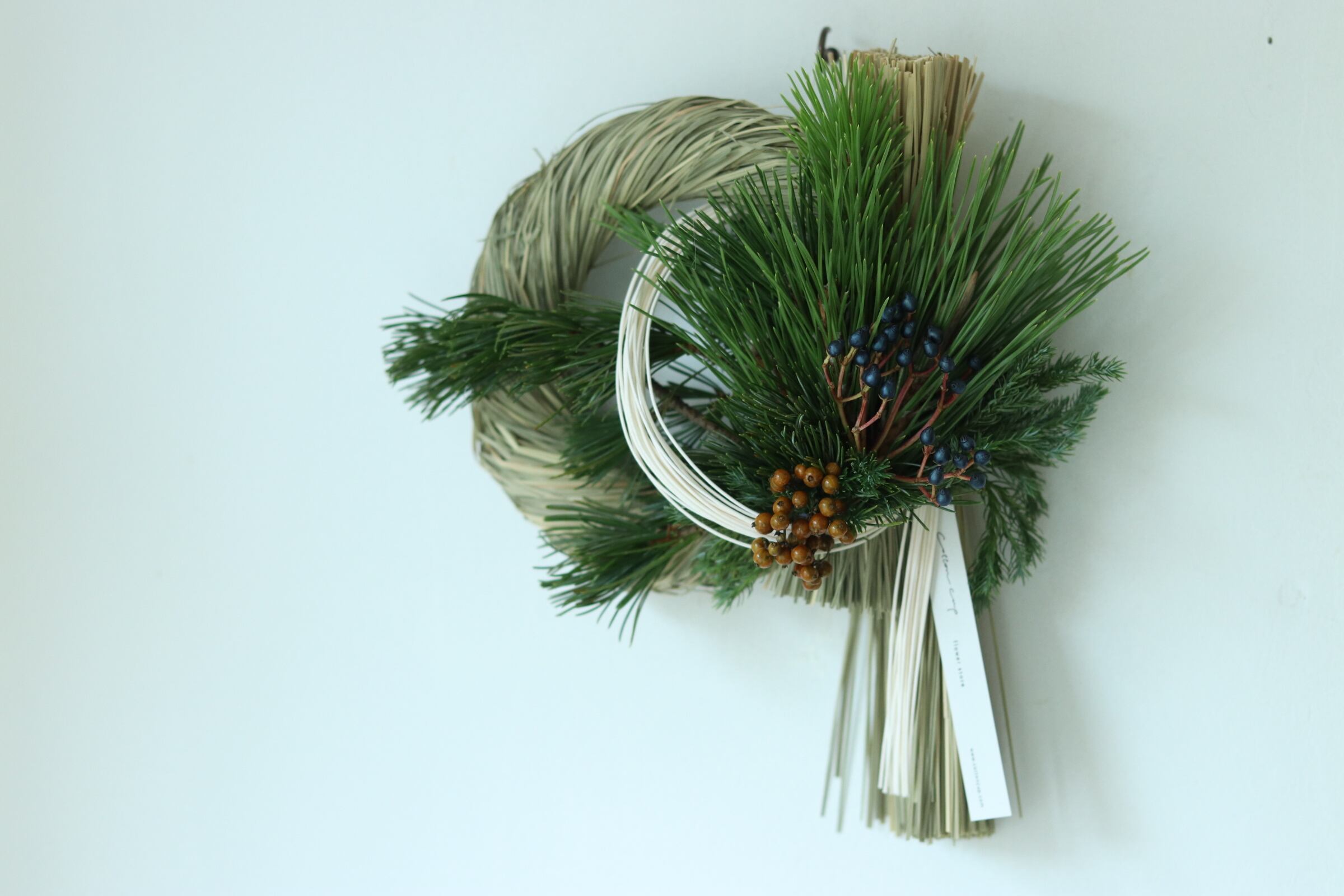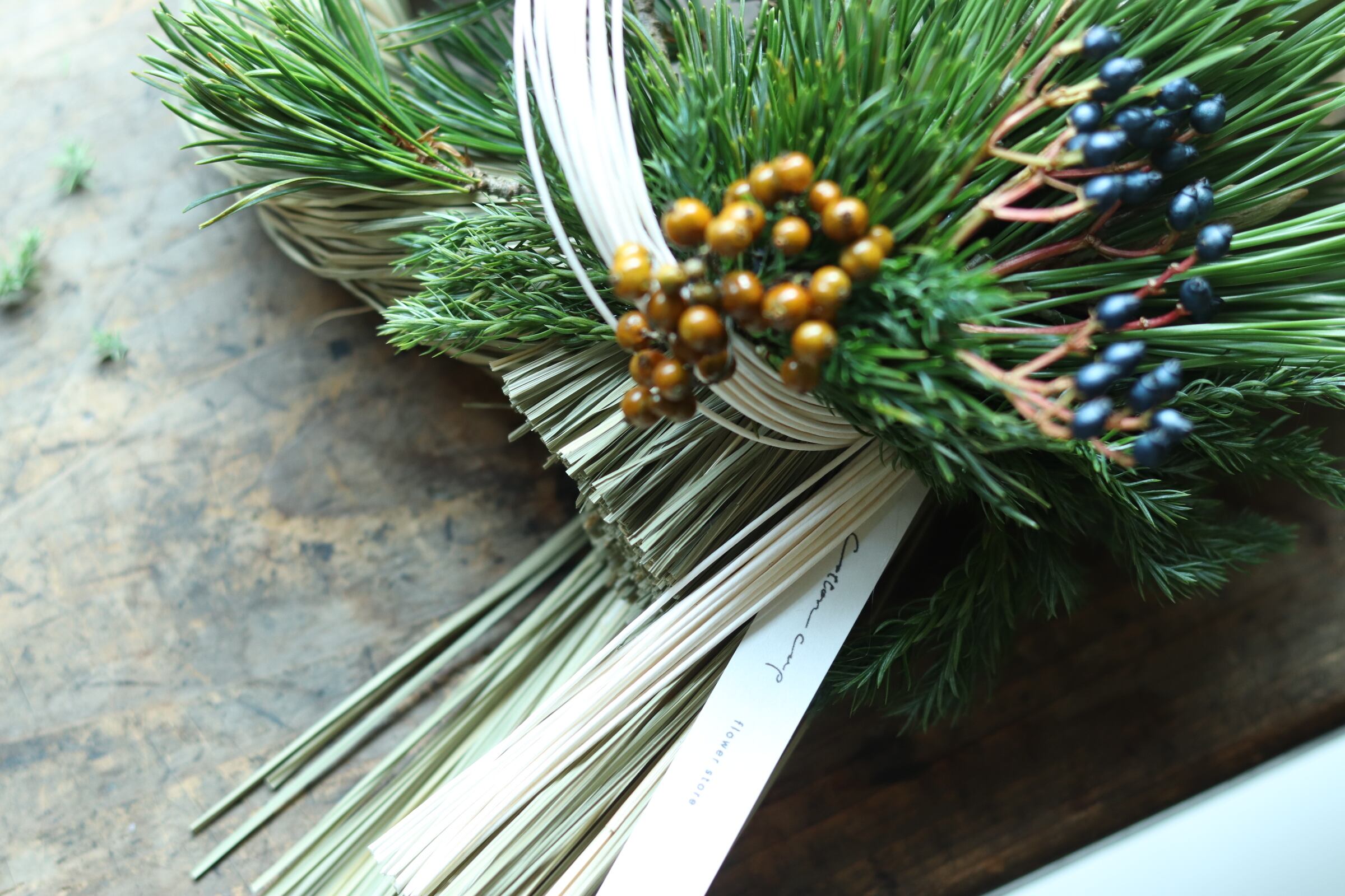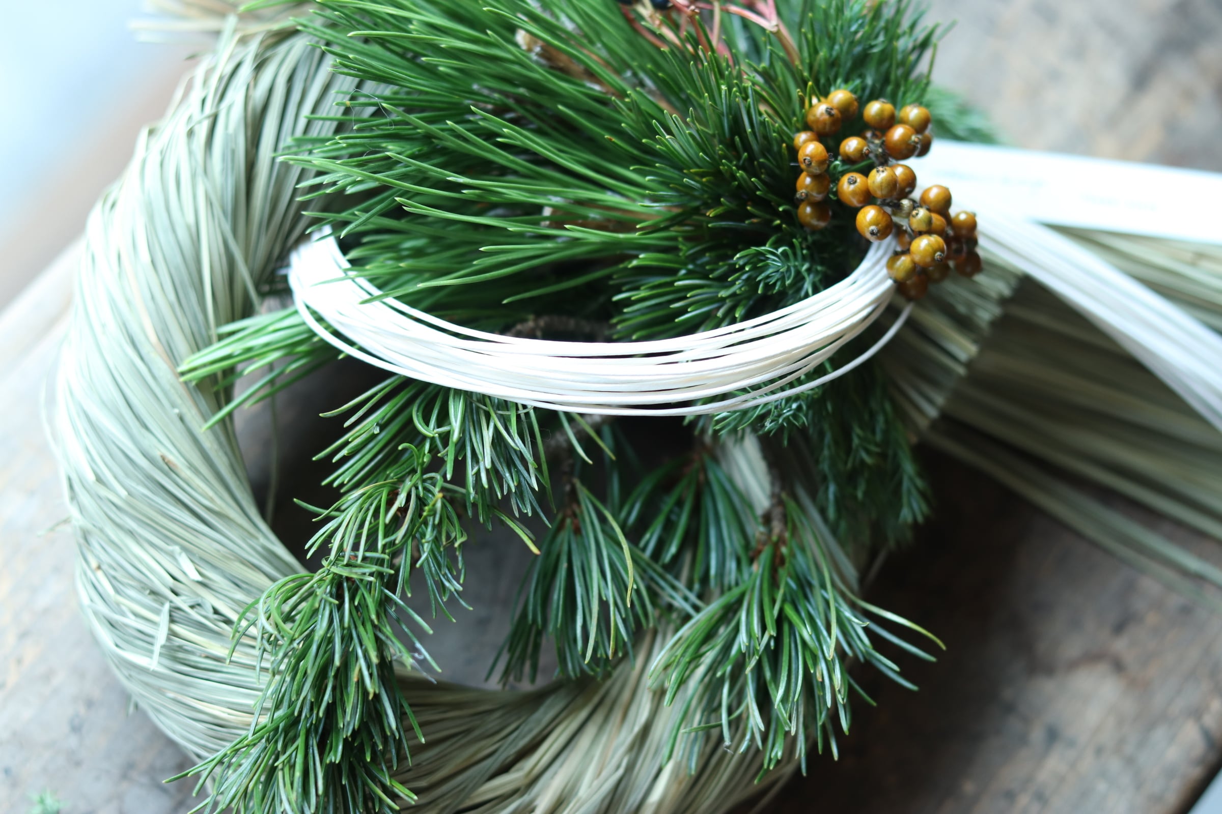 材料: 松、稲 、ビバーナムティナス、ヘクソカズラ