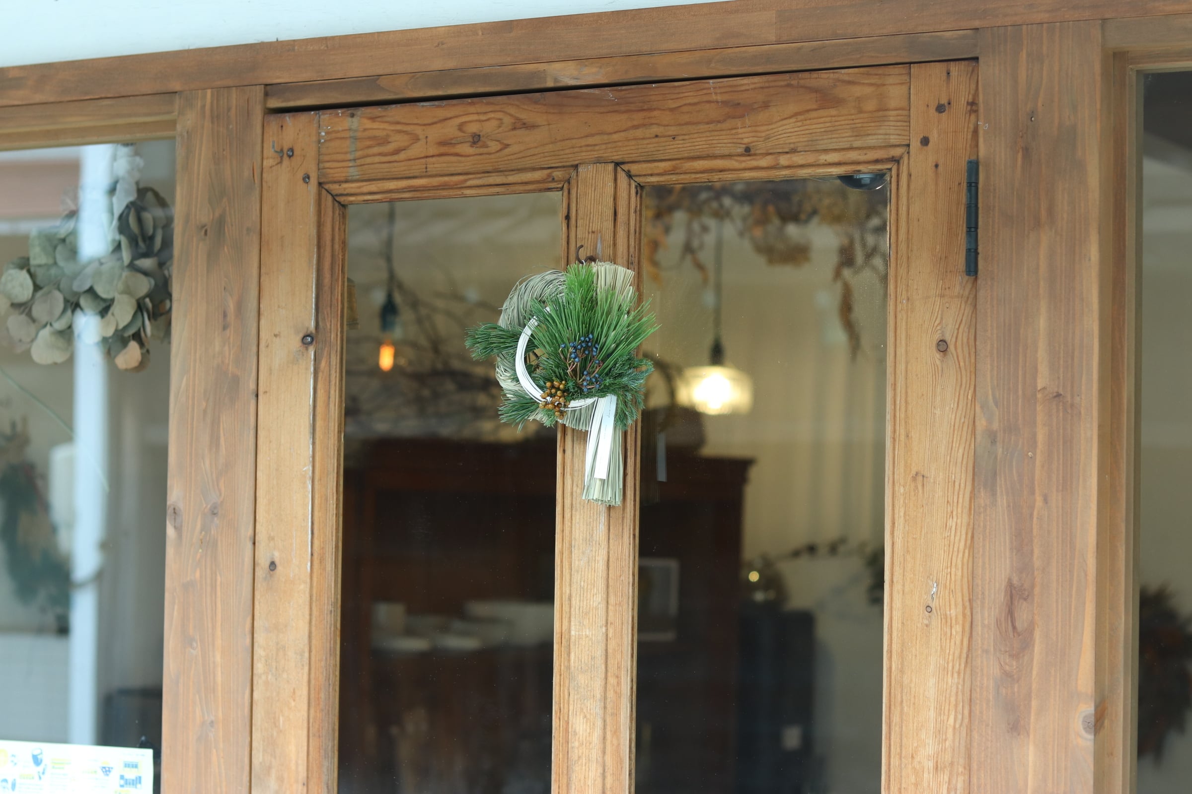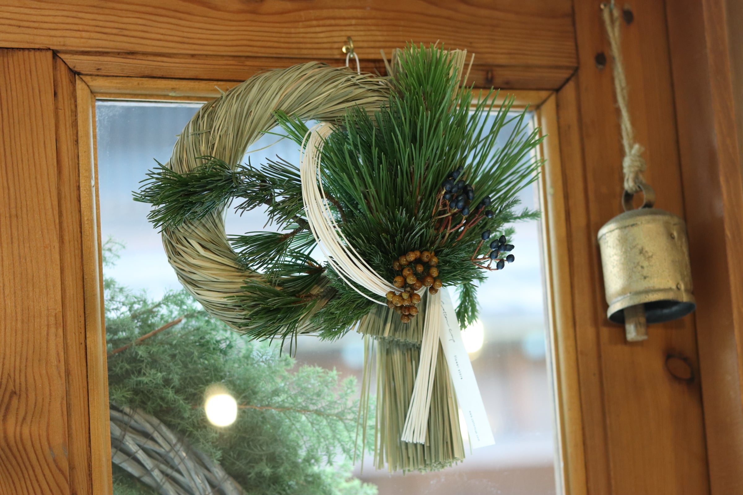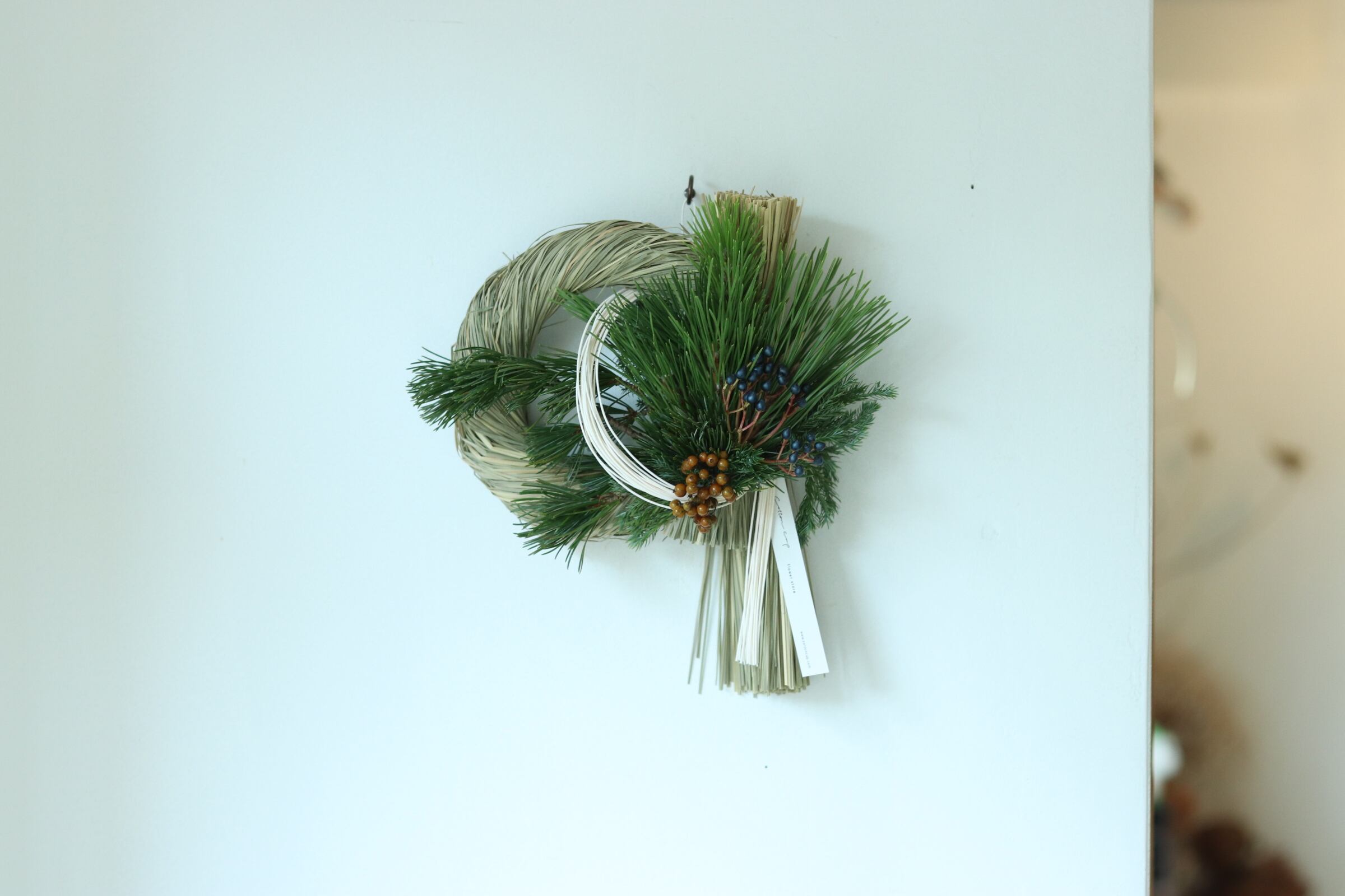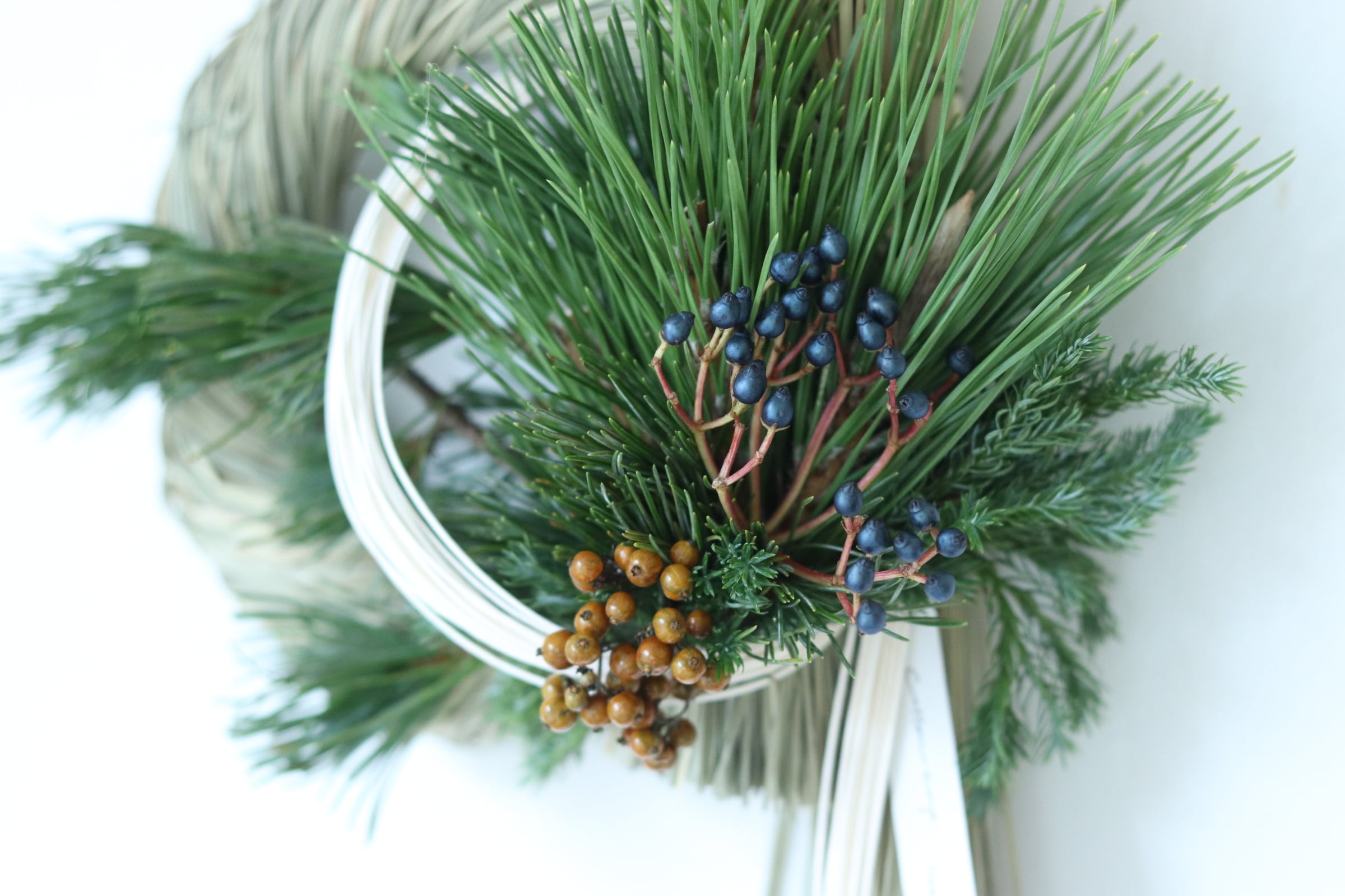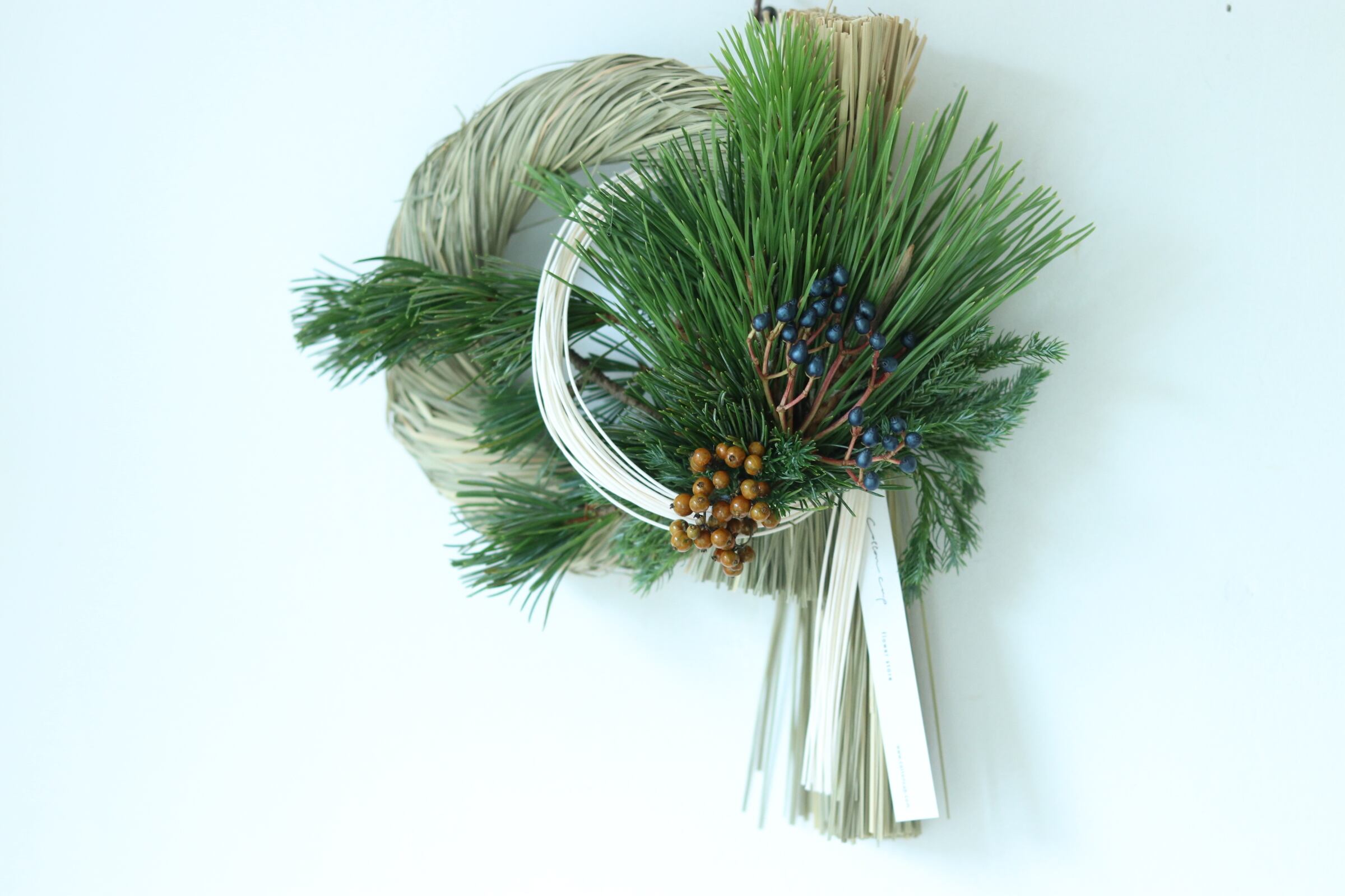 材料: 松、稲 、ビバーナムティナス、ヘクソカズラ