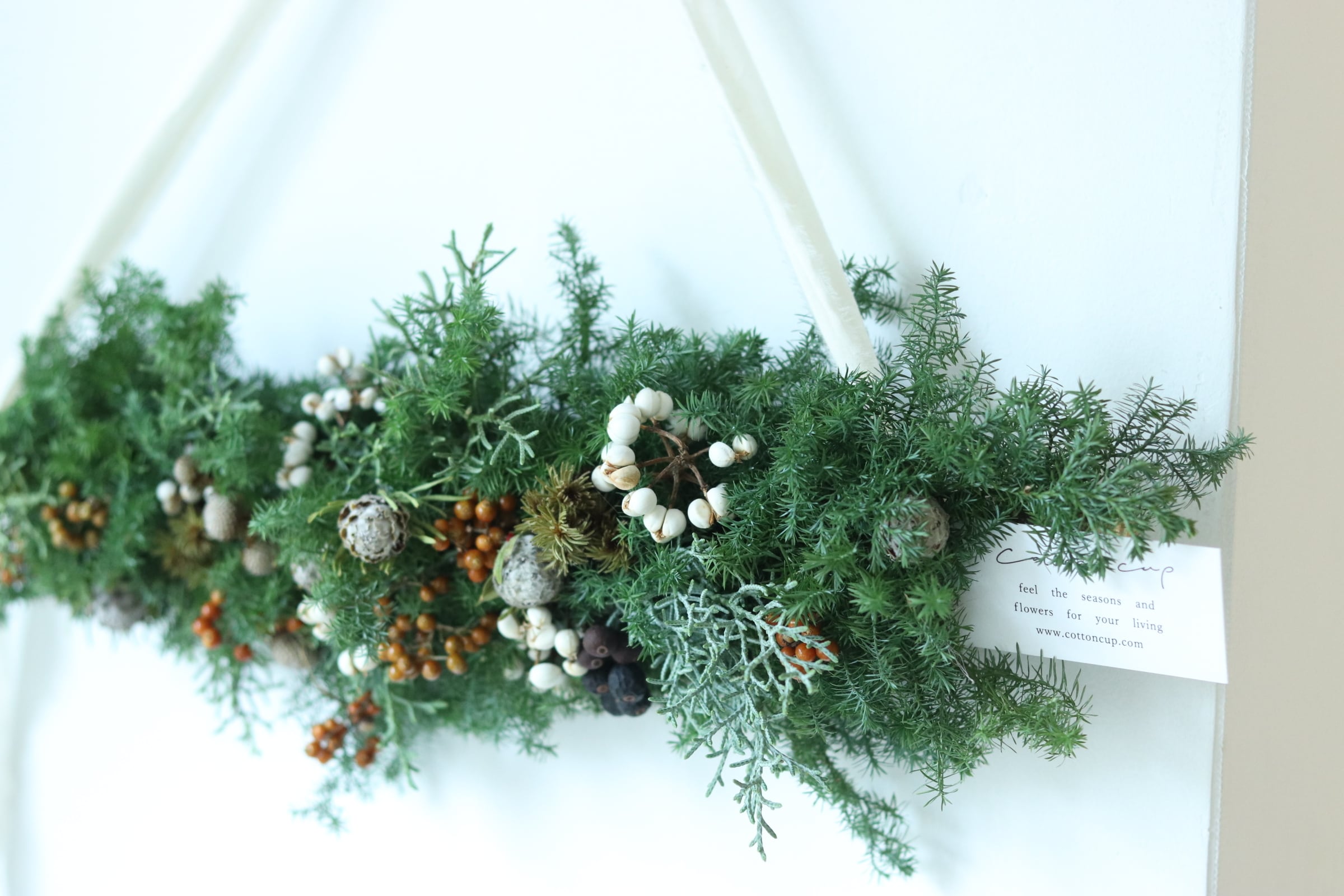 材料: ヒムロスギ、ブルーアイス、ヘクソカズラ.ナンキンハゼ、ティナス