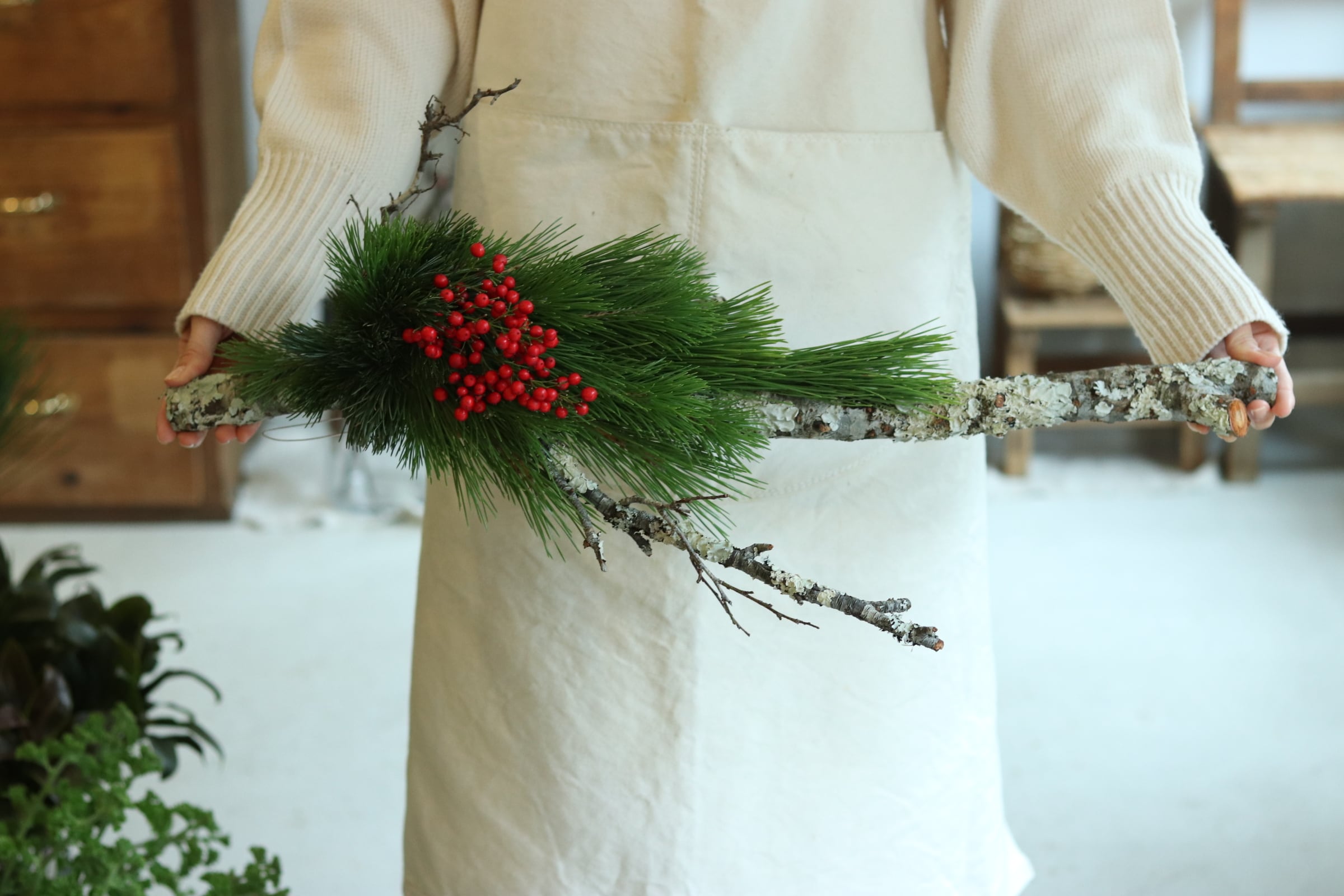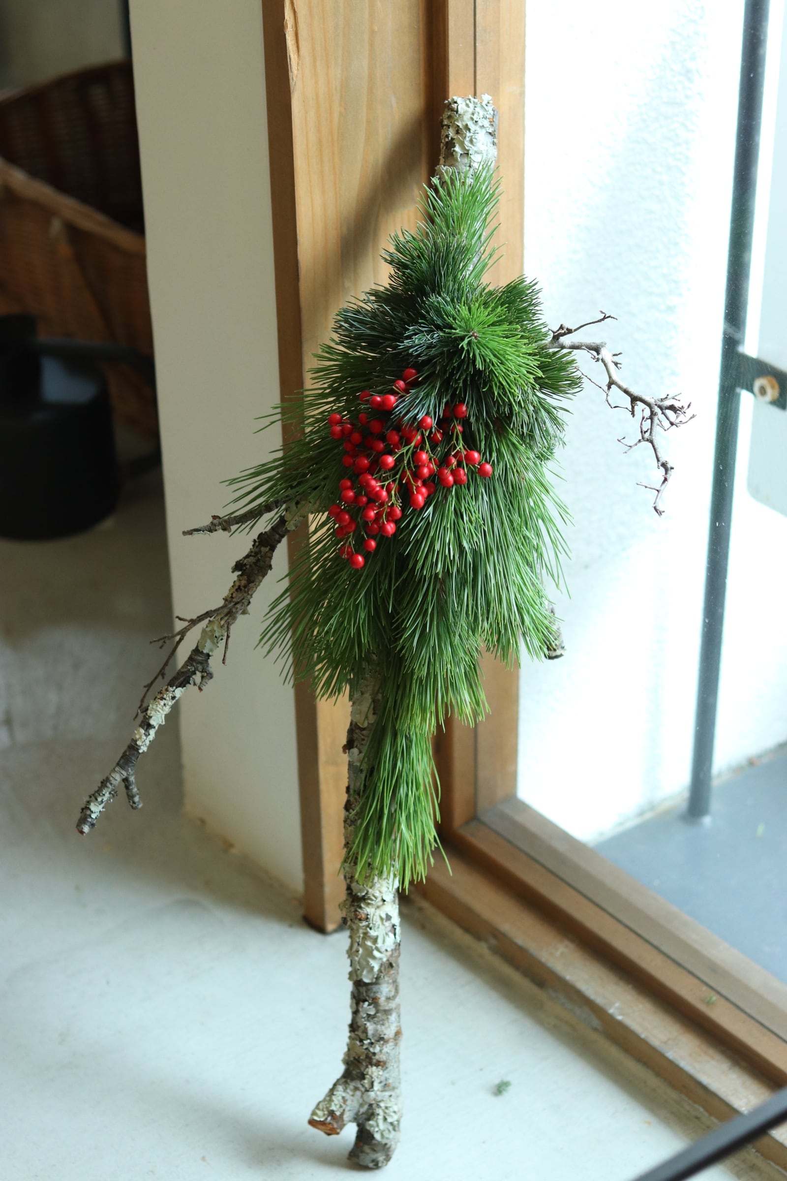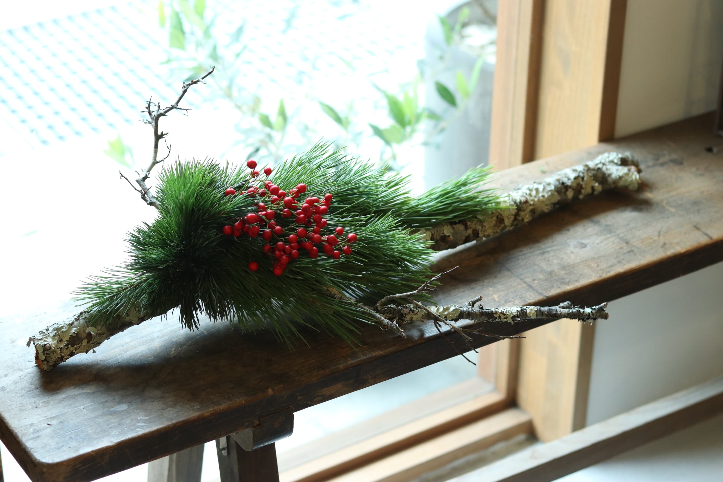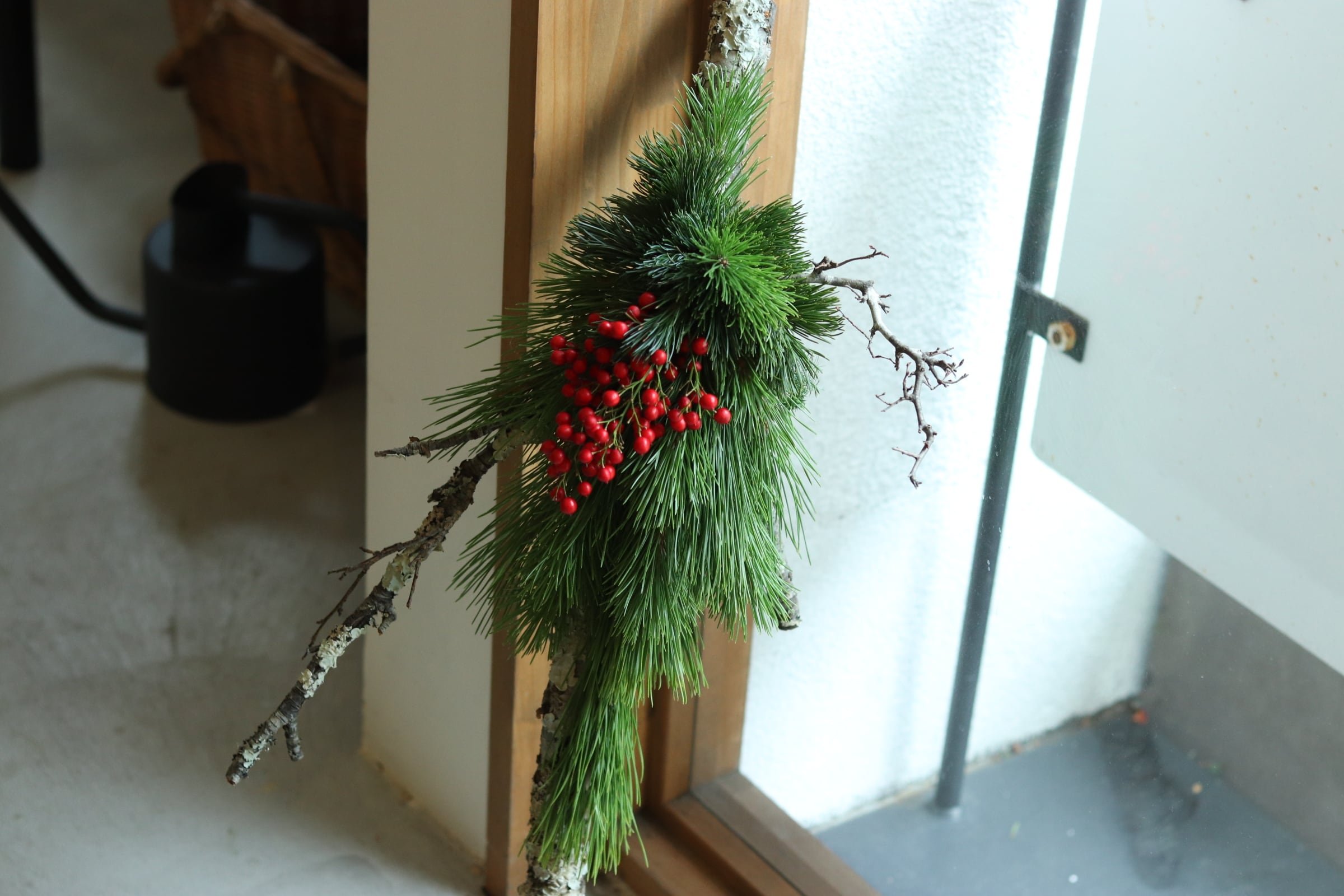 松と苔朴を使ったシンプルなお正月アレンジです。