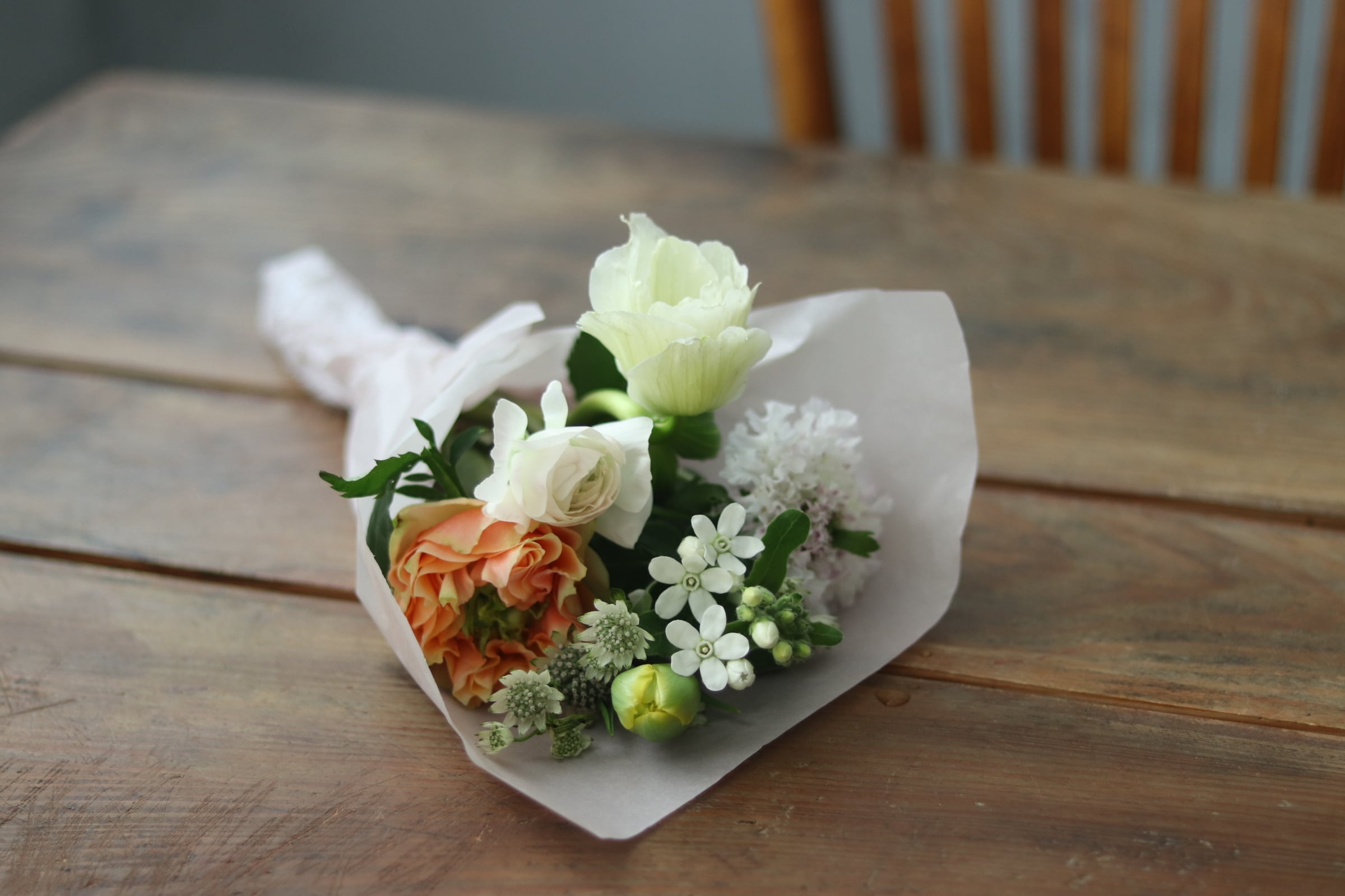 cottoncupセレクトの季節のお花を、2ヶ月に1回ブーケ(2000円)にしてお届けいたします。(こちらは6回コースです。)