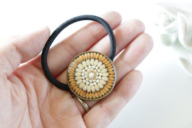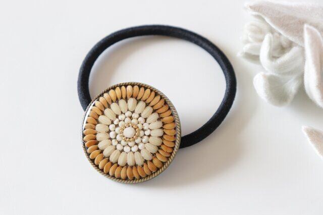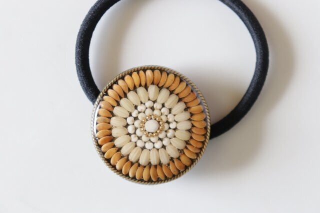 アマに・キヌア・など雑穀を並べて樹脂をコーティングしたヘアゴムです。