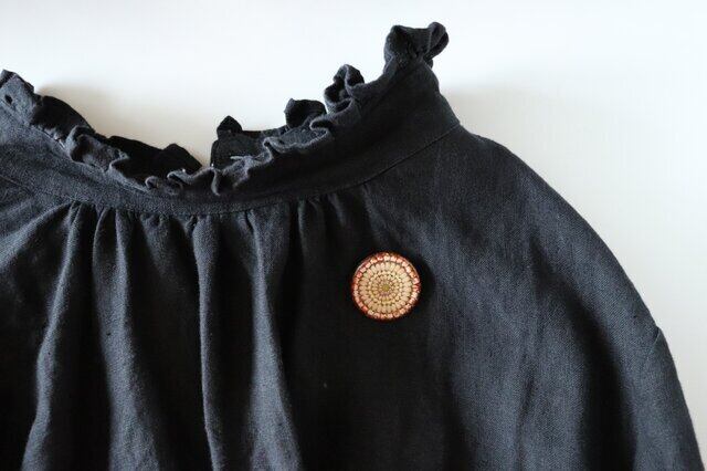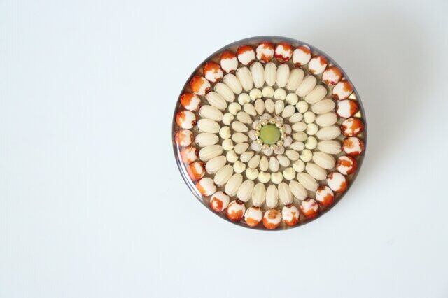 丸麦、お米・など雑穀を並べて樹脂をコーティングしたブローチです。