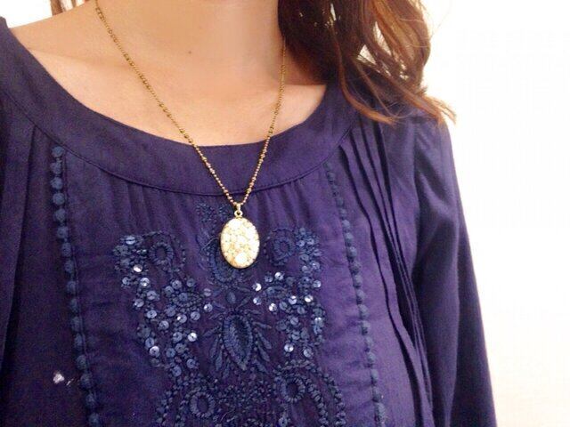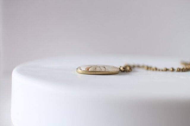 丸麦、お米・など雑穀を並べて樹脂をコーティングしたネックレスです。