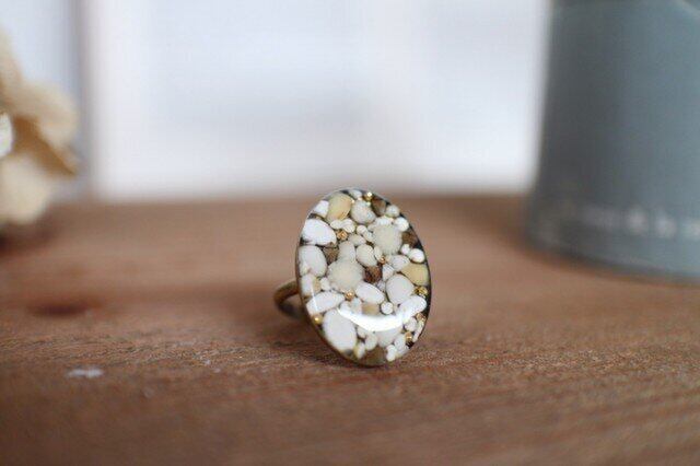 丸麦、お米・など雑穀を並べて樹脂をコーティングしたリングです。