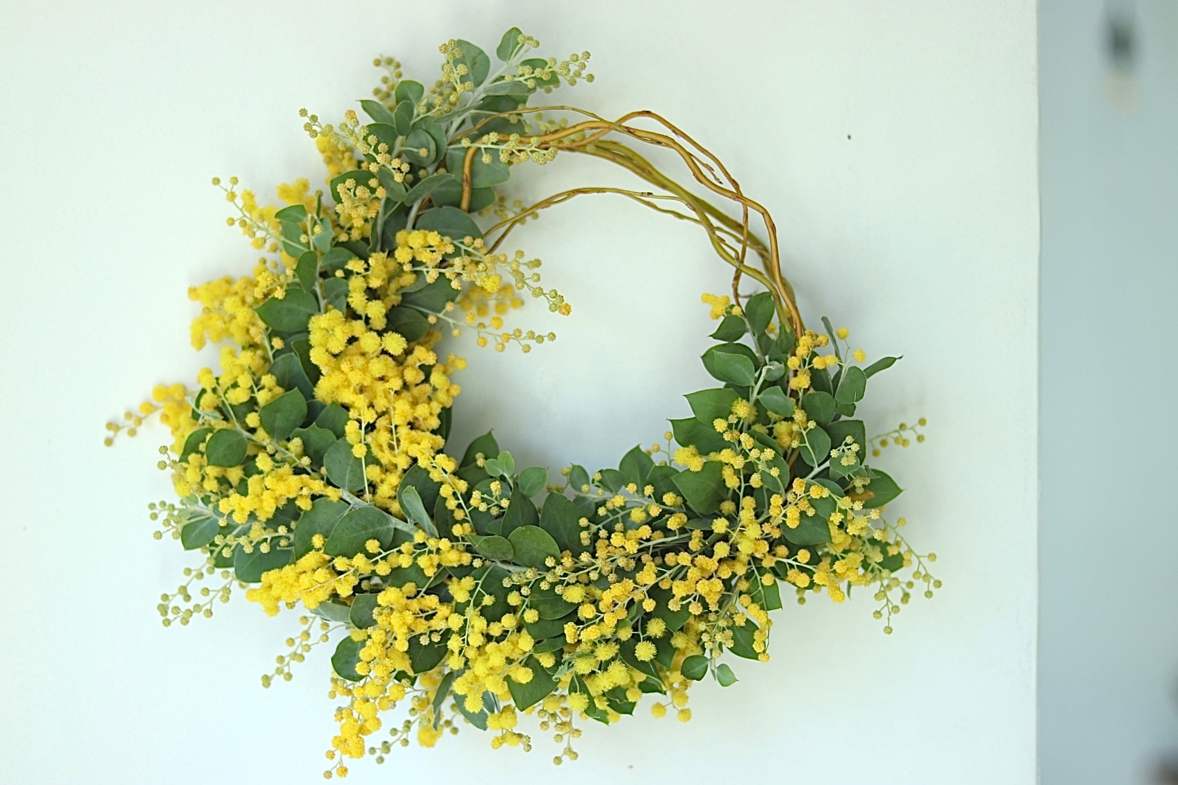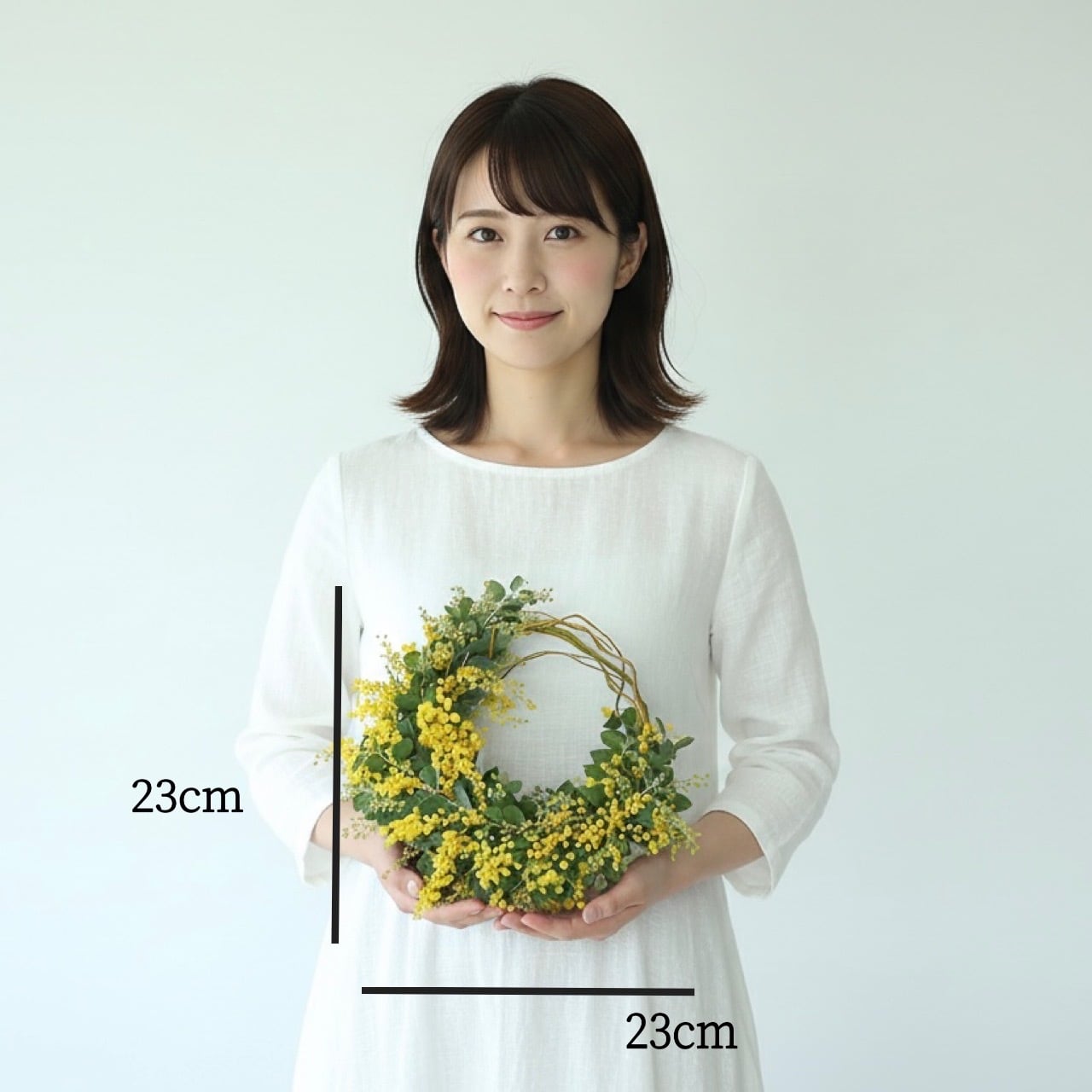 春の訪れを感じさせる、鮮やかな黄色のミモザリース。その優しい色合いが、お部屋のインテリアに華やかさをプラスします。ドアや壁に飾ることで、明るく心温まる空間を演出します。厳選したミモザを使用し、一つ一つ丁寧に手作りしております。