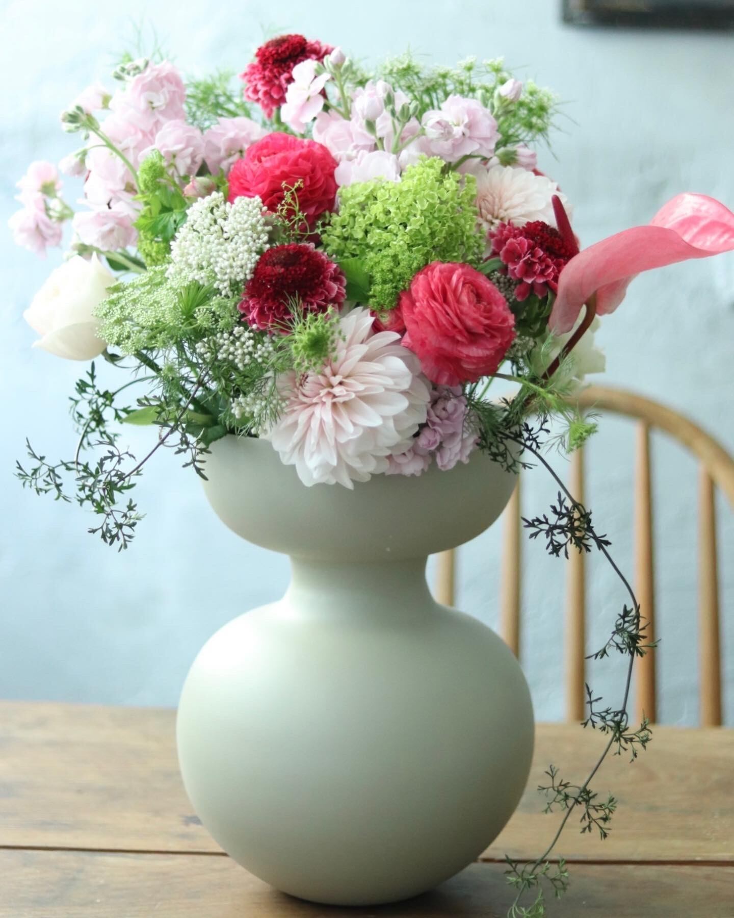スチール製の大きなツボ型フラワーベース。