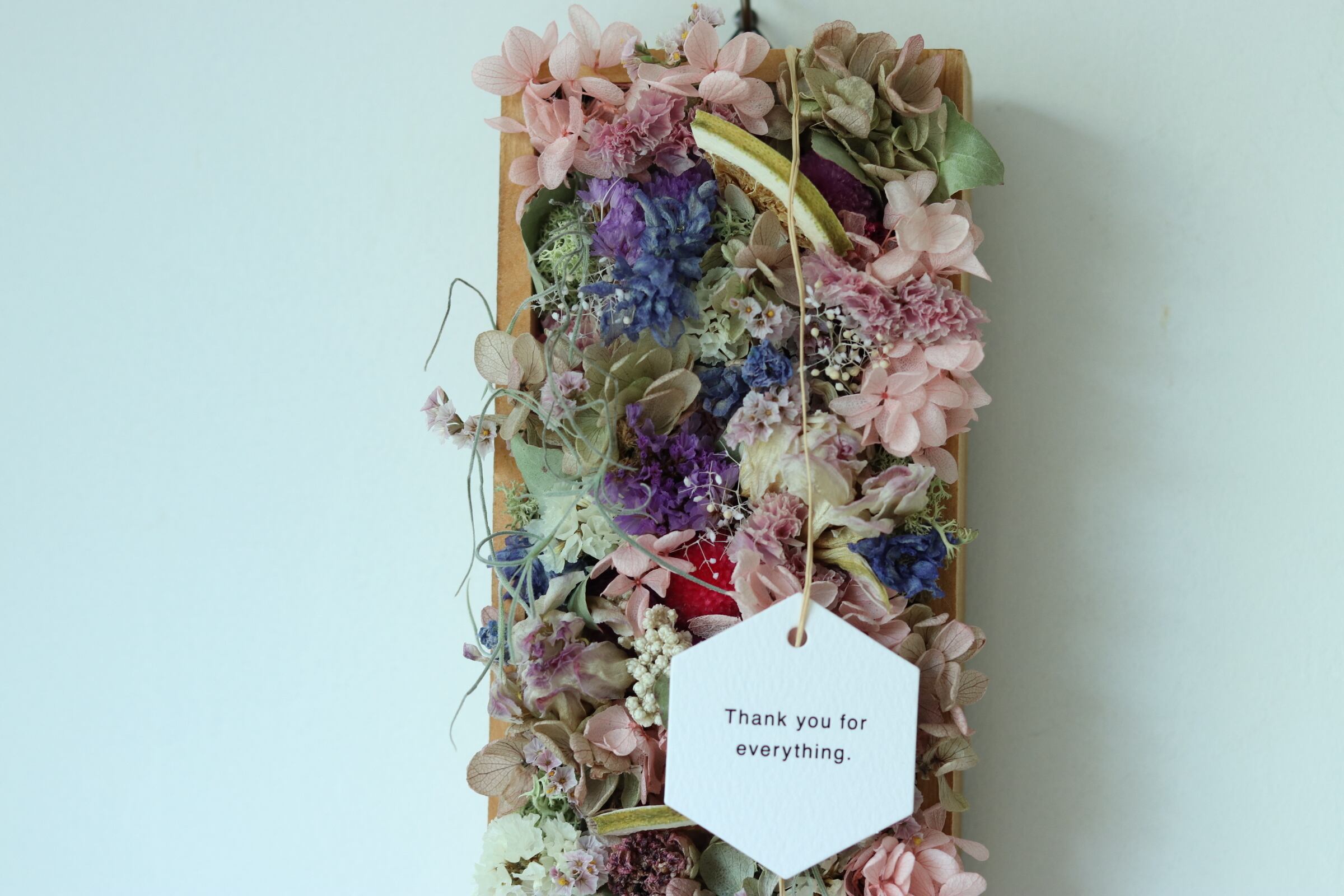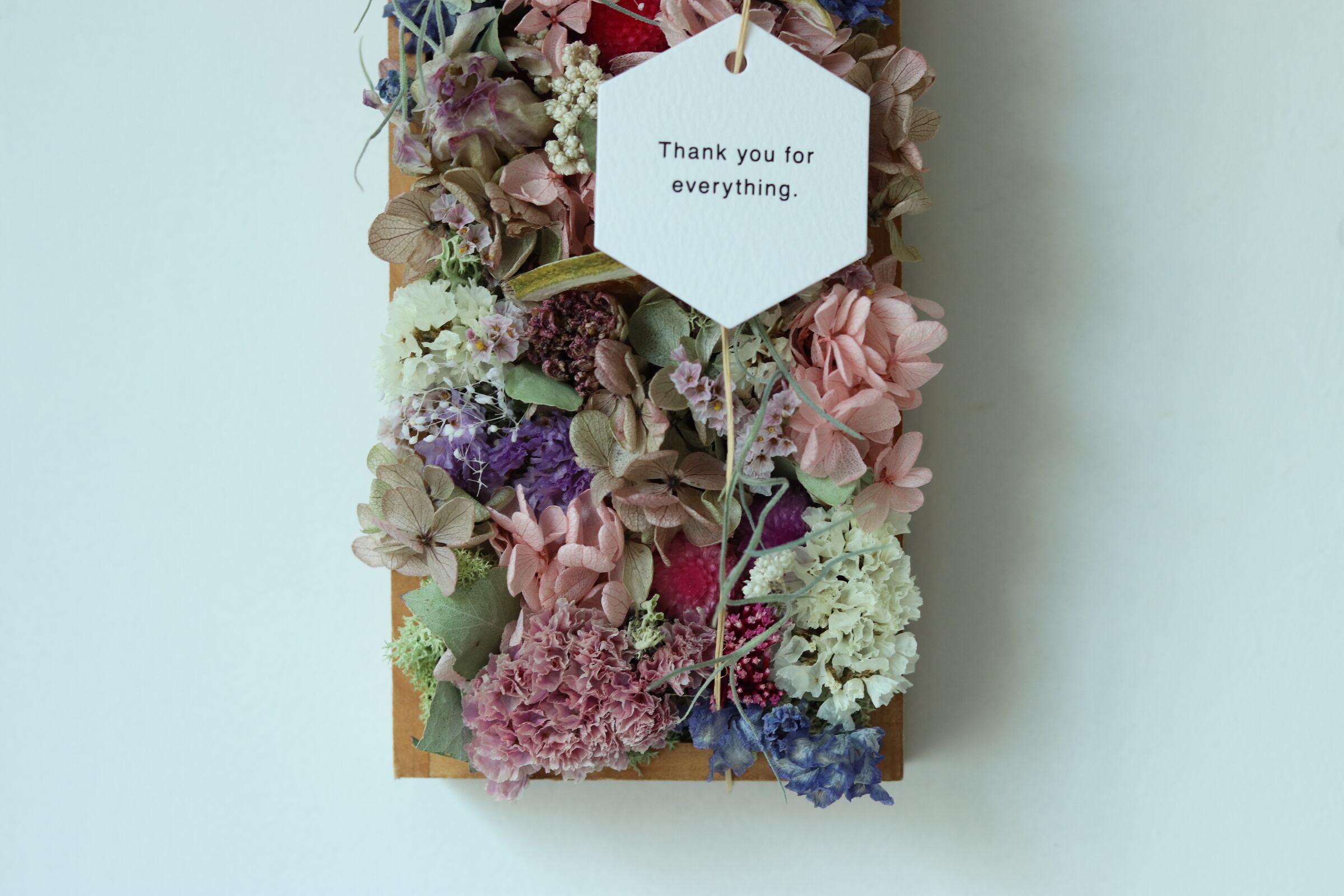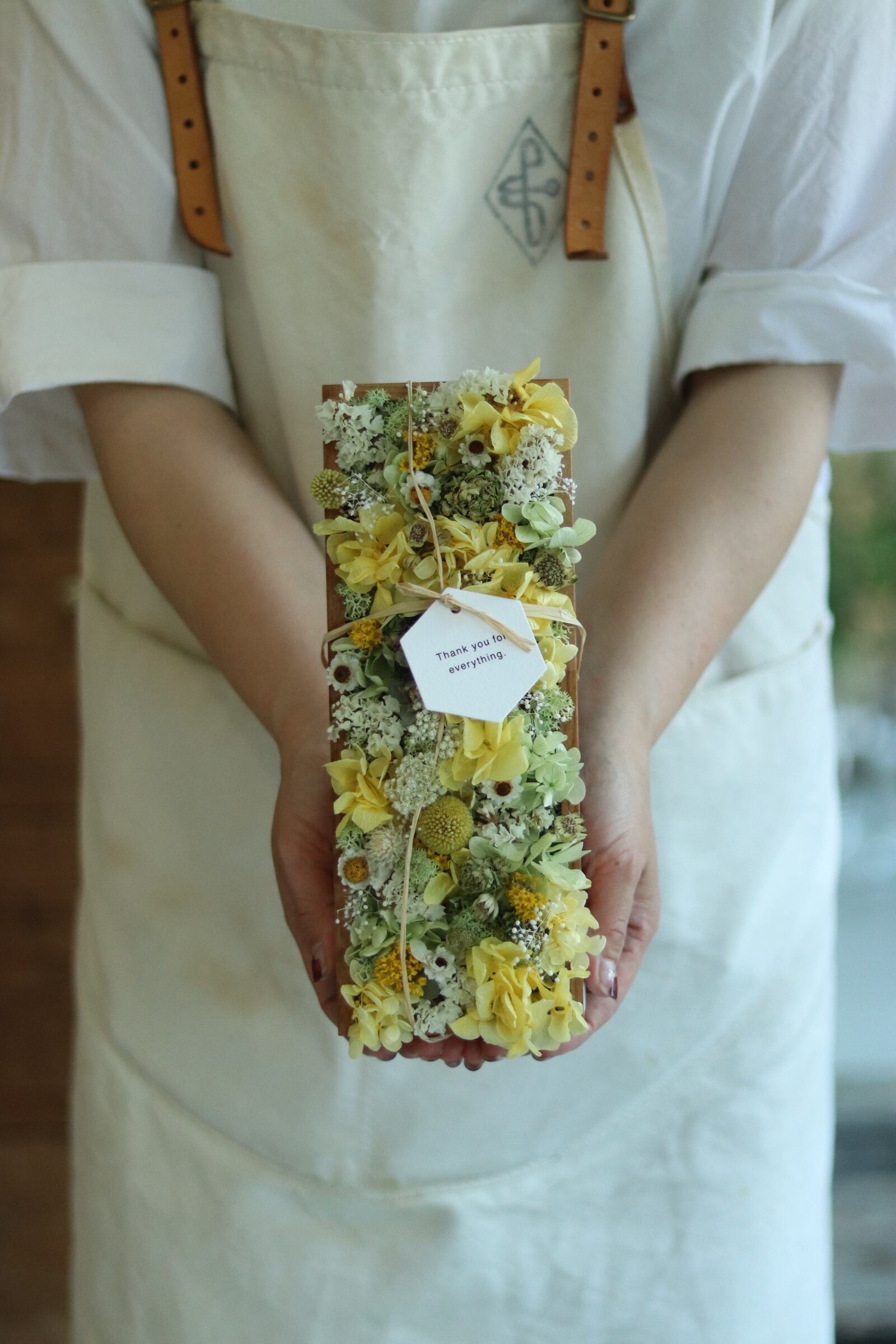 たくさんのドライフラワーを木のBoxに詰め込みました。