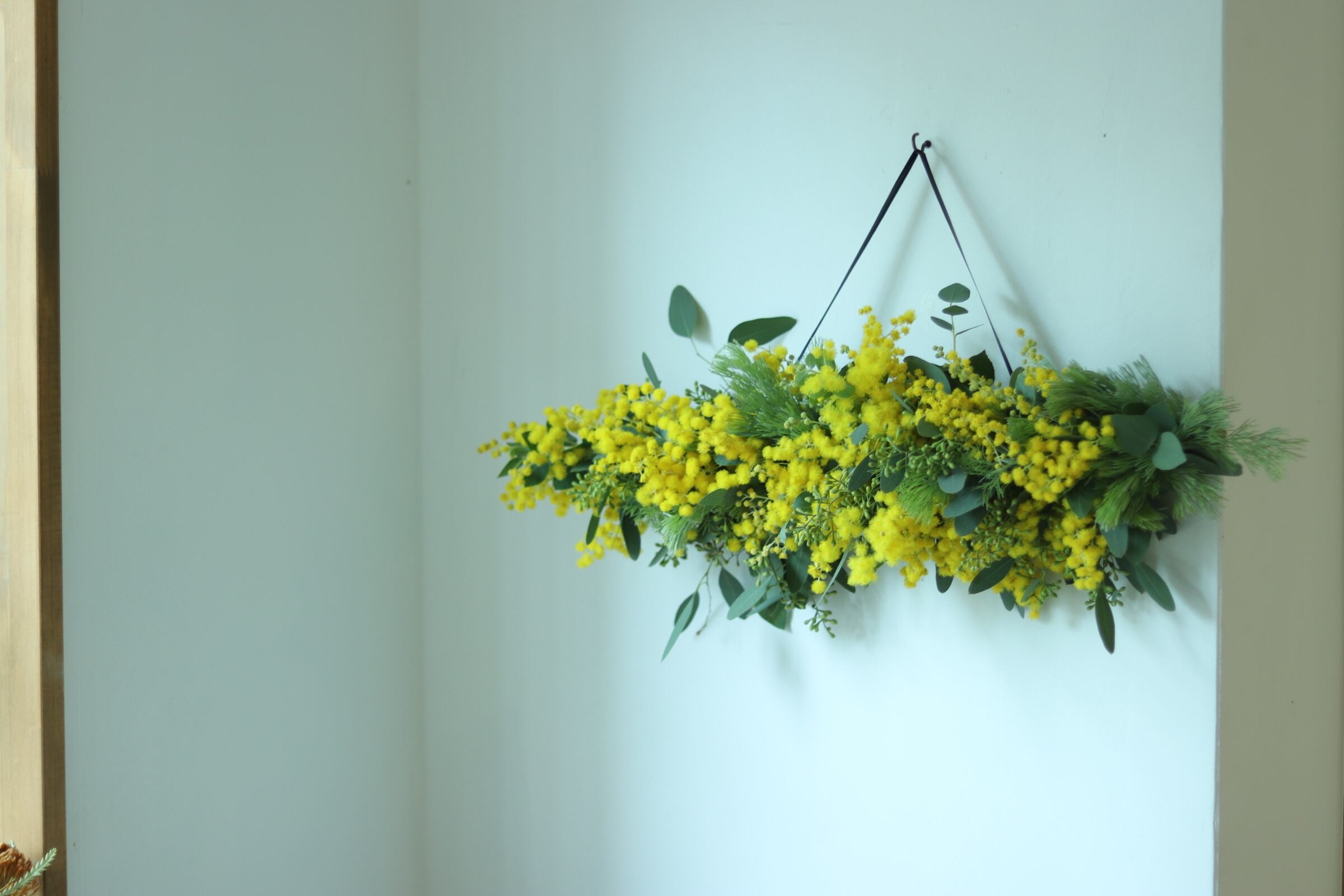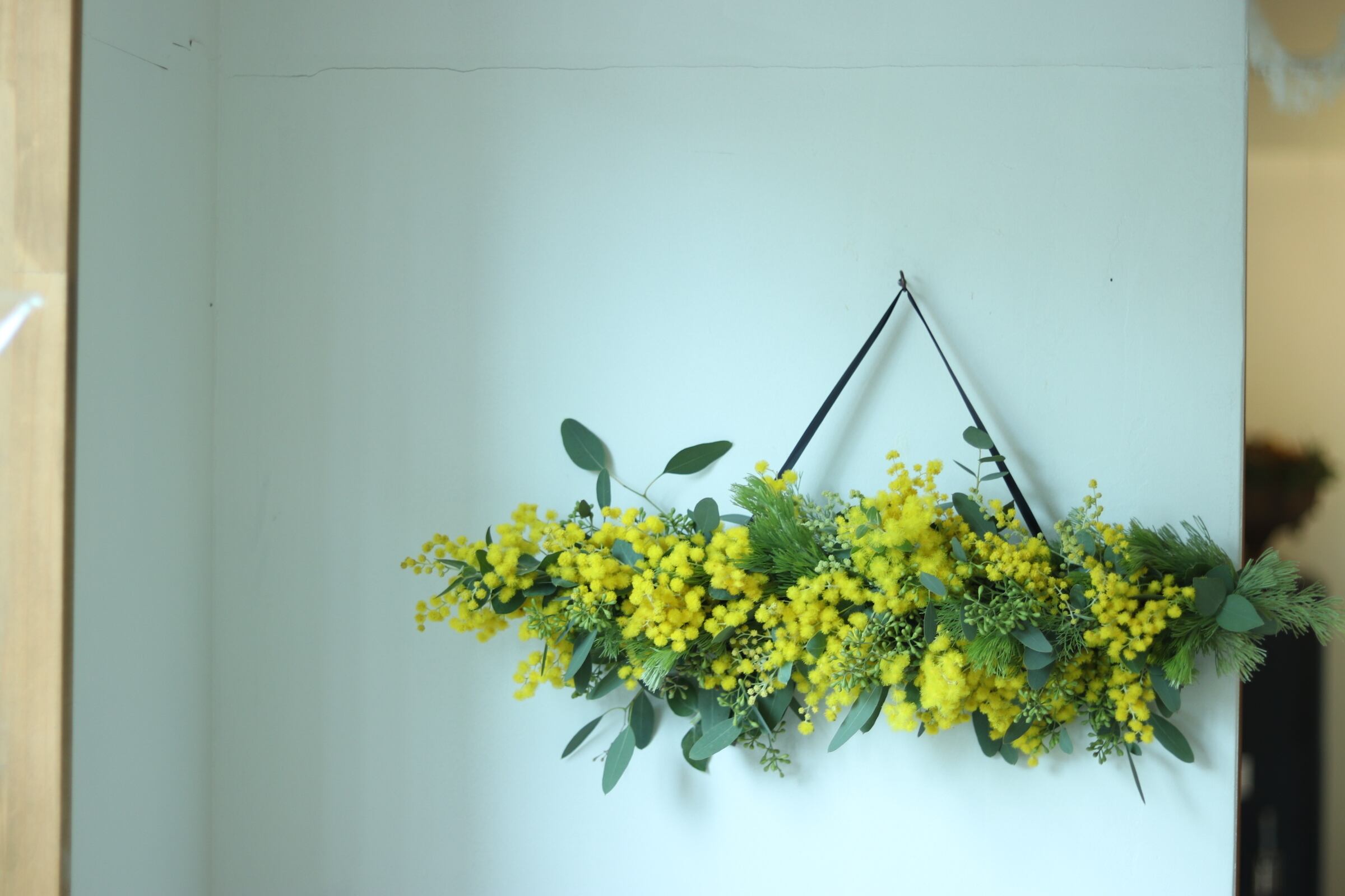 #ミモザスワッグ #ドライフラワー #ハンドメイド #インテリア #春の装飾