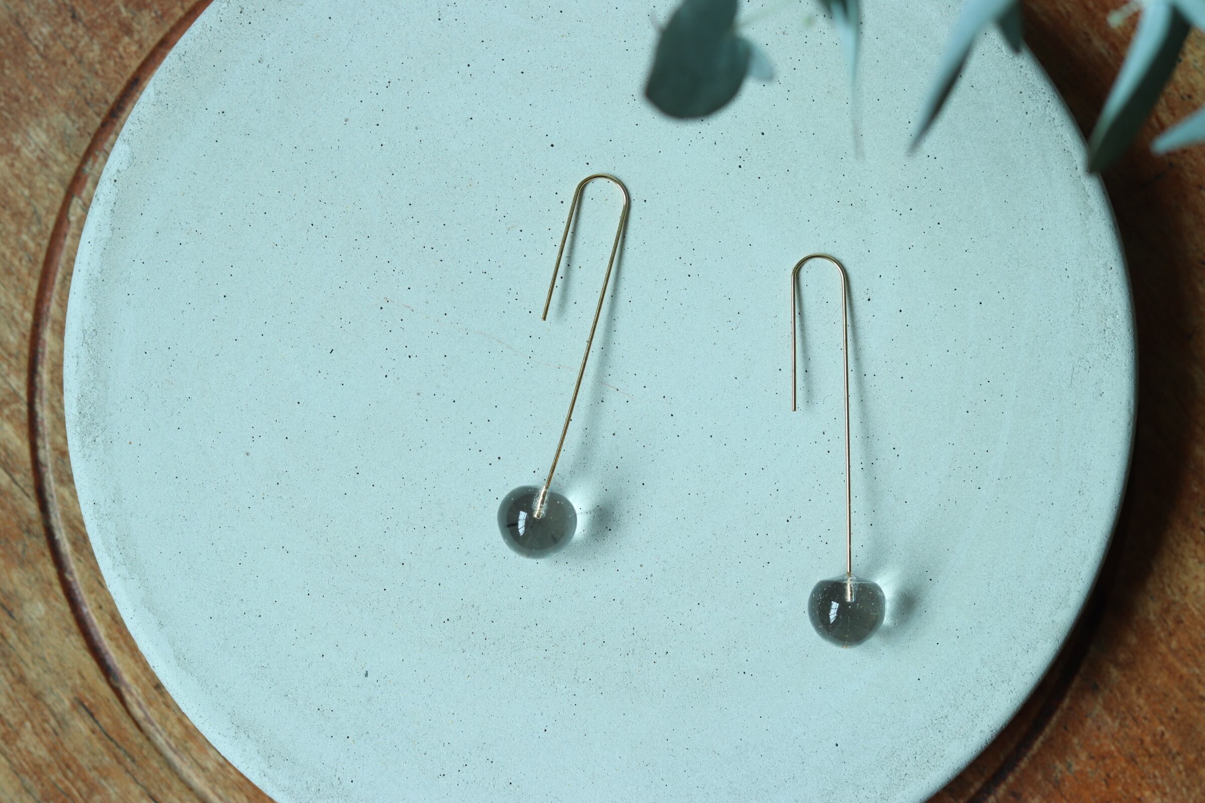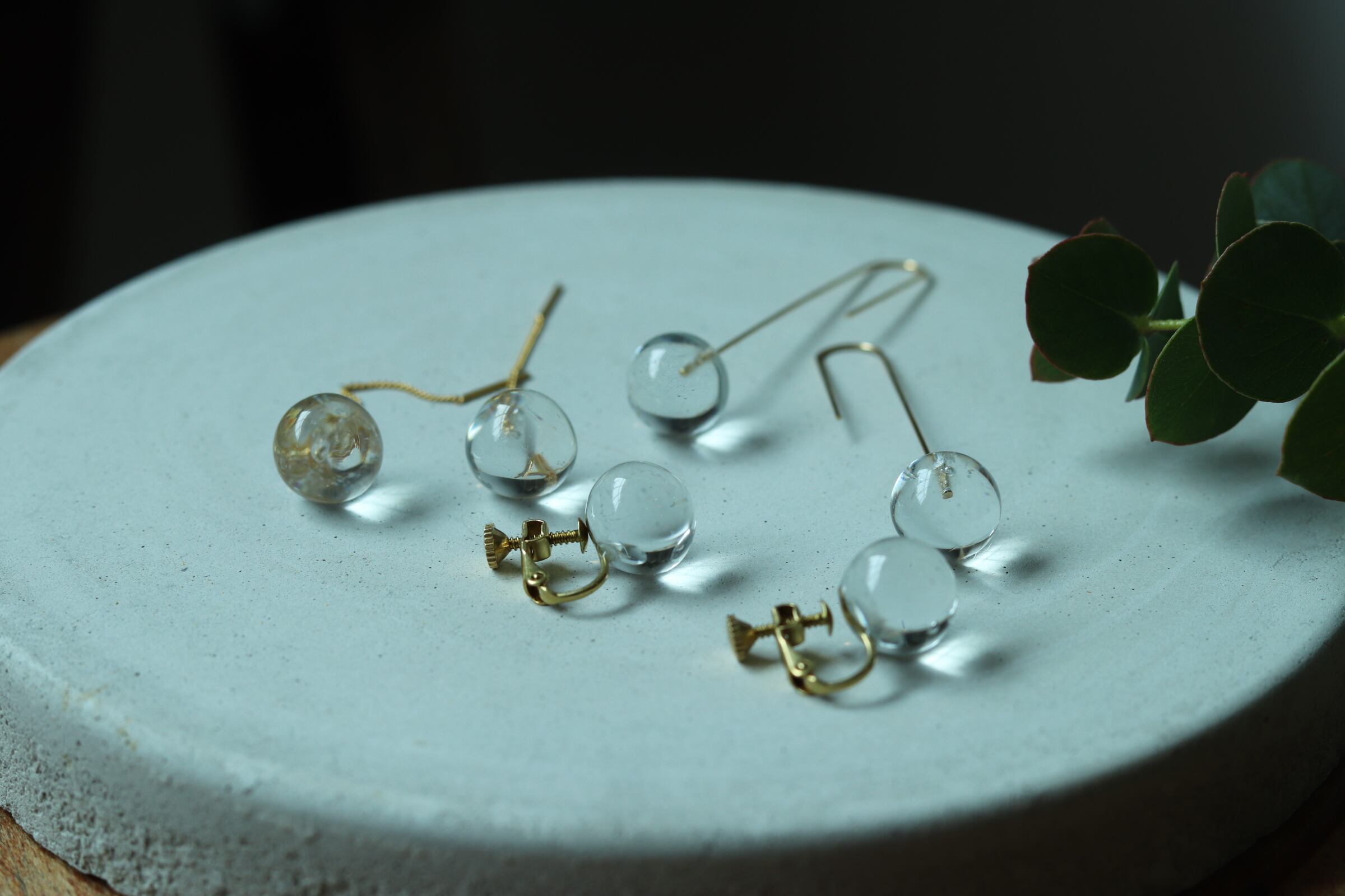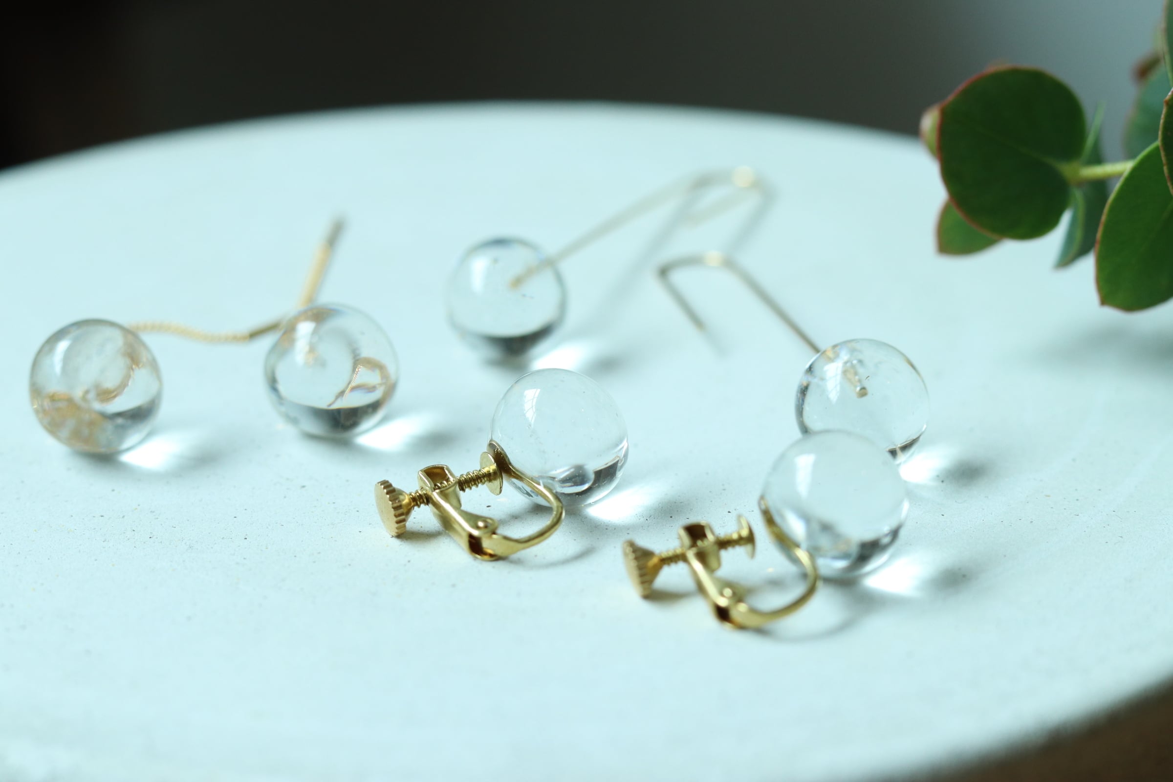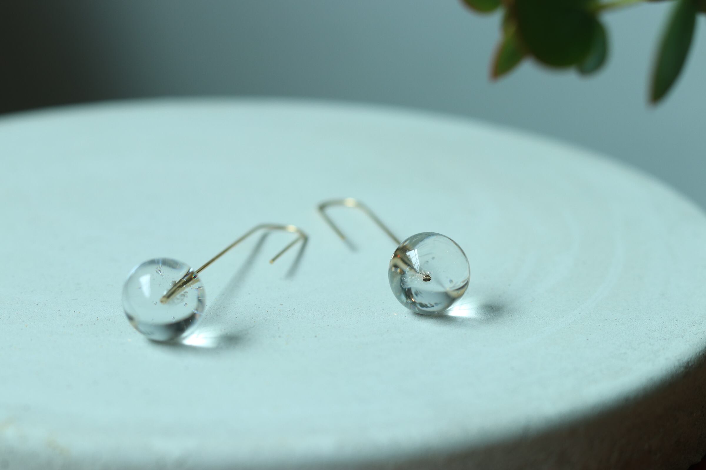 樹脂で作ったゆらゆら揺れる透明ピアスです。