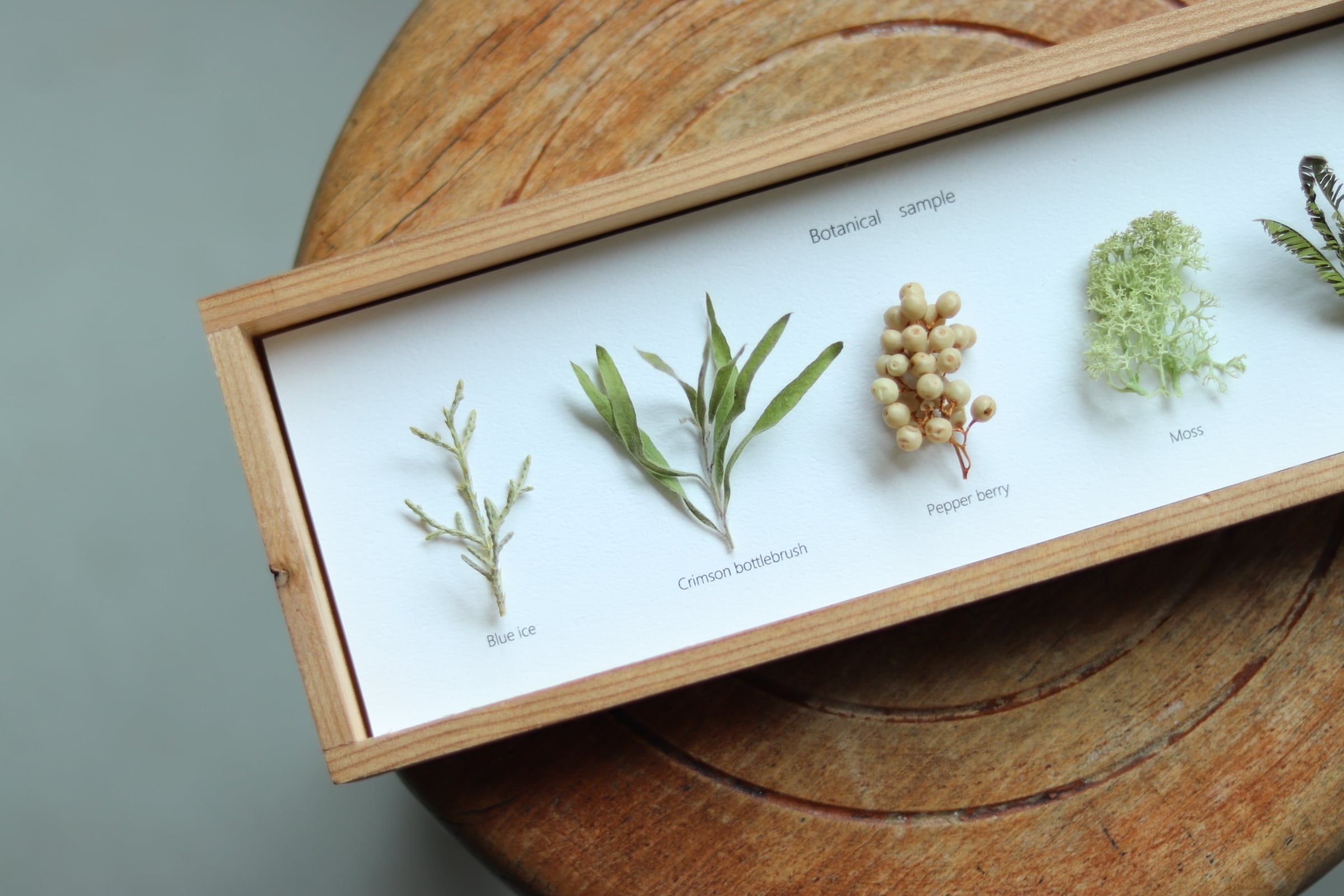材料: ブルーアイス、ハナマキ、ペッパーベリー、モス、ミモザ