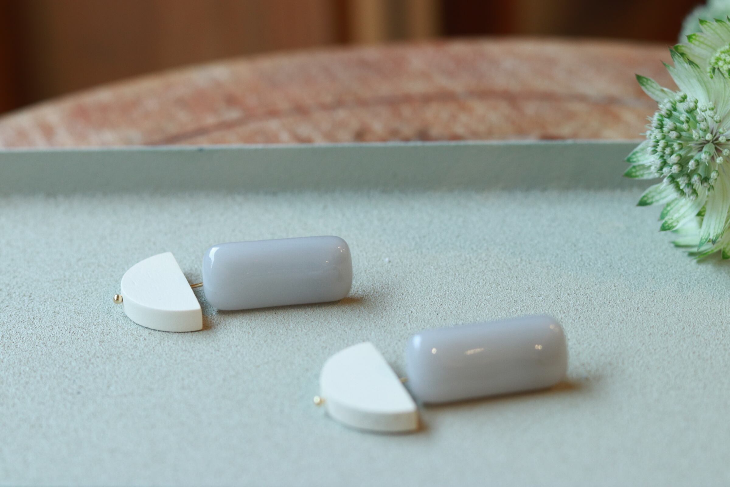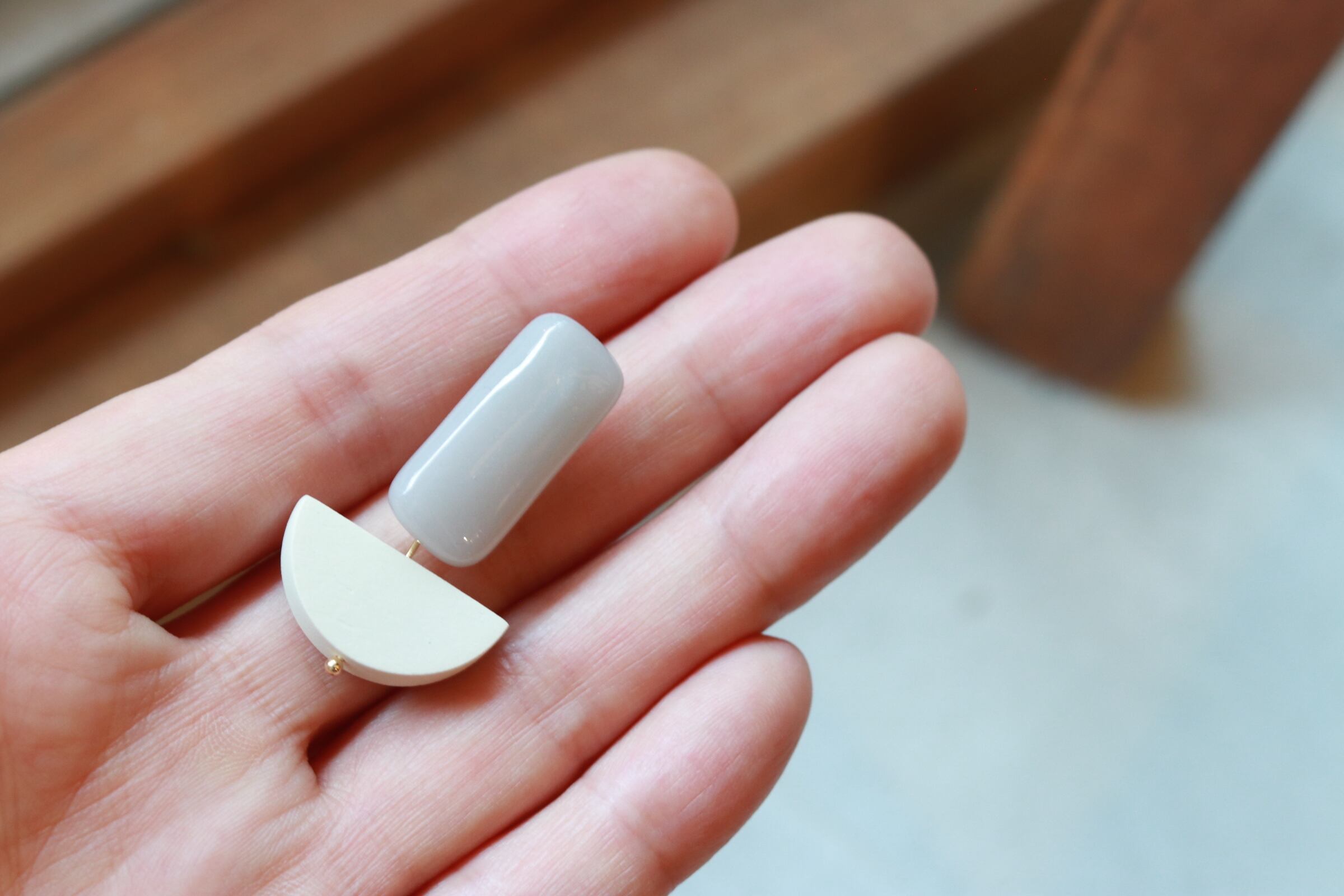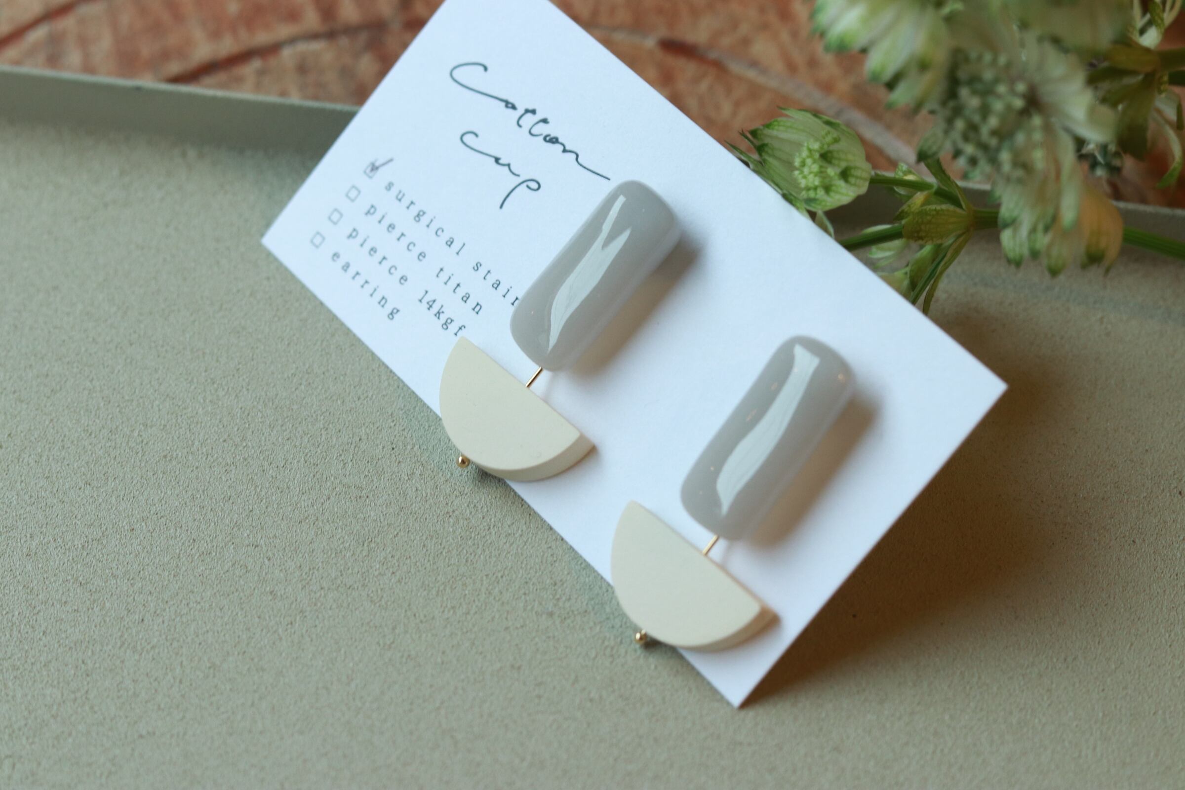 くすみカラー ライトグレー 2wayピアス、イヤリング
