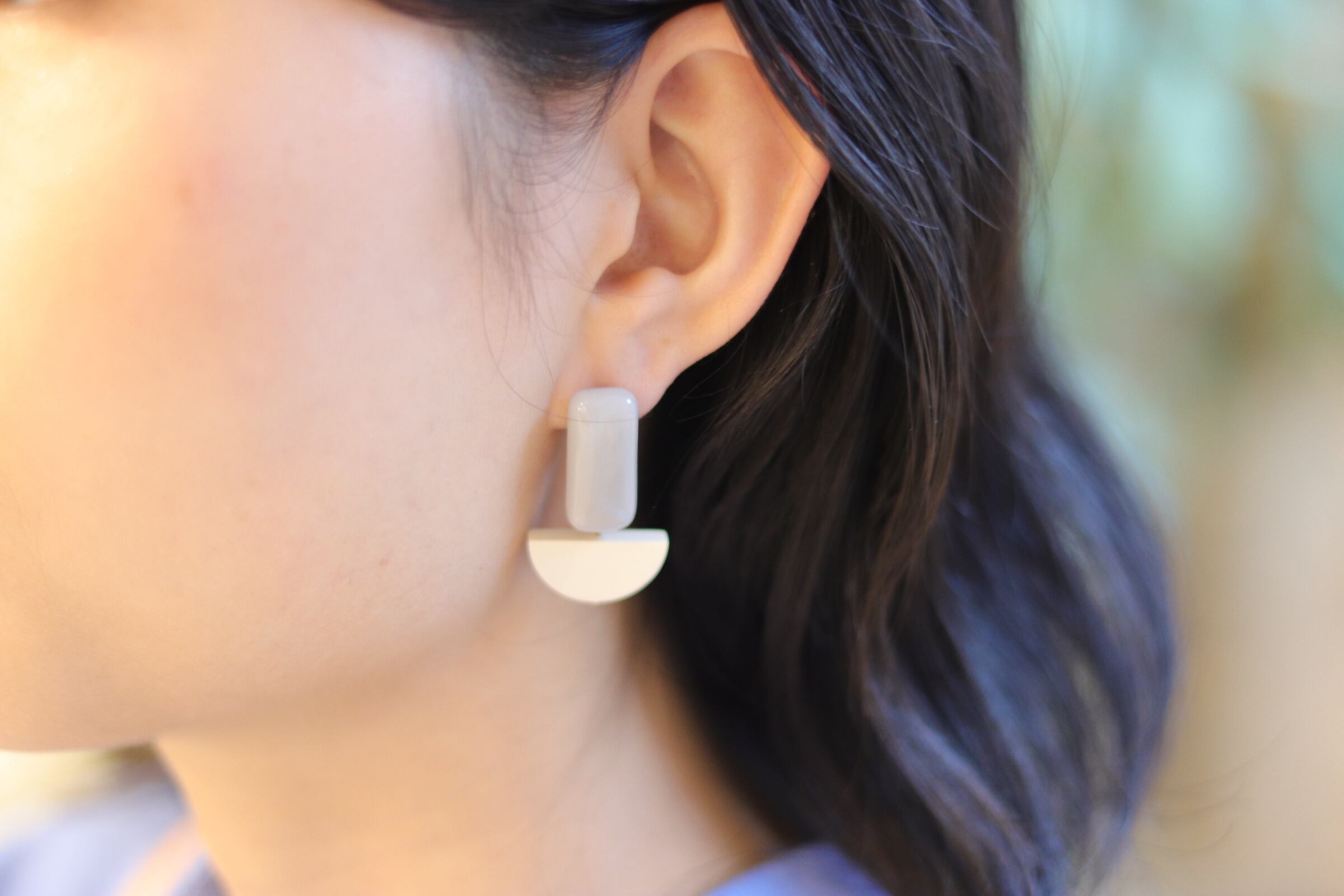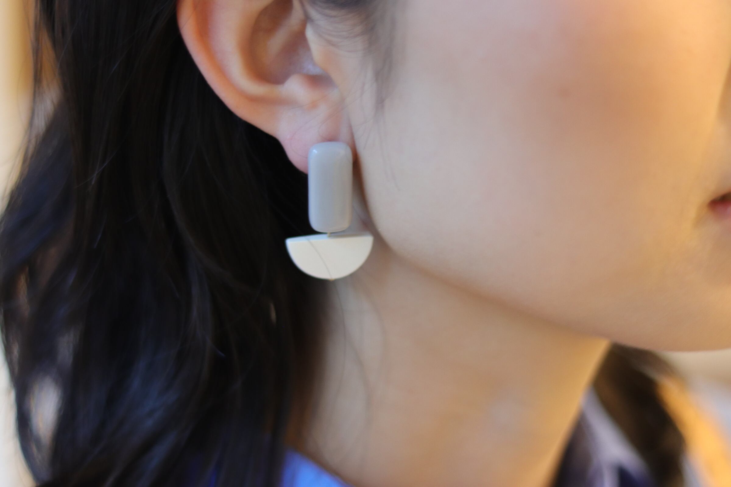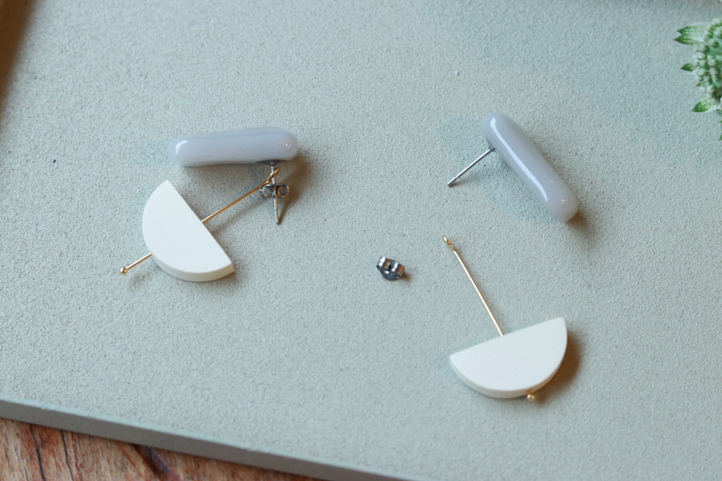 くすみカラー ライトグレー 2wayピアス、イヤリング