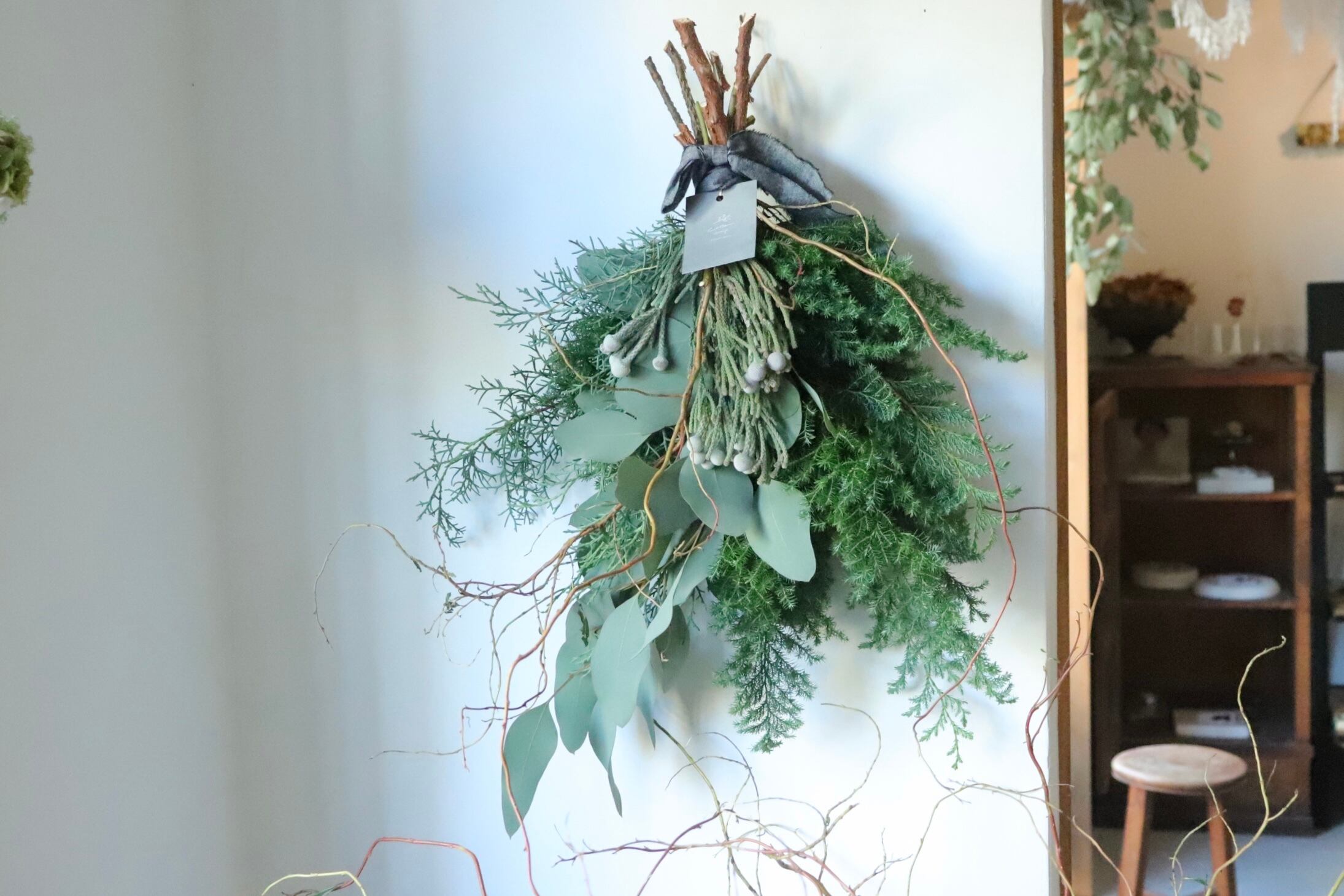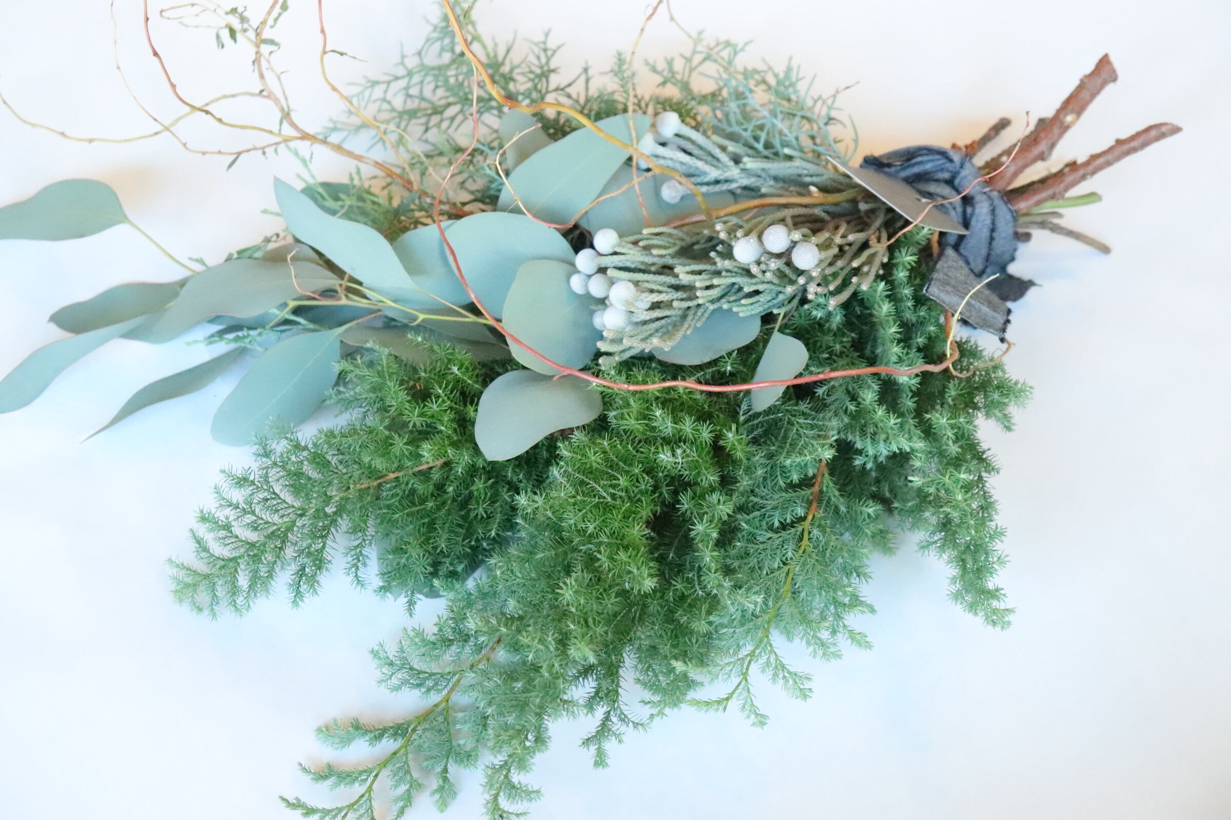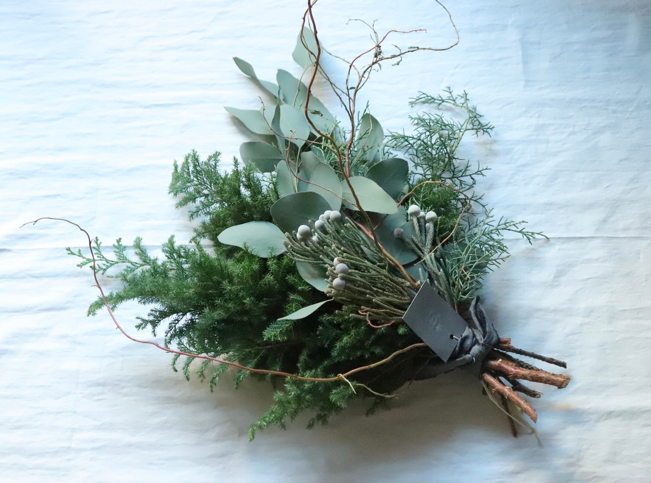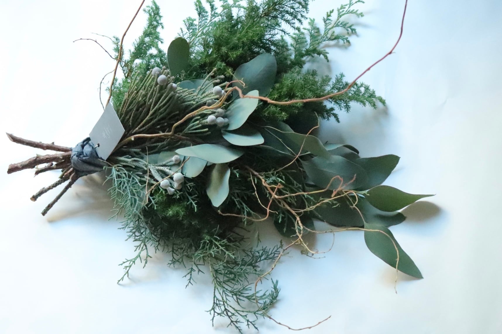 材料: ブルーアイス、ヒムロスギ、ブルーバード、シルバーブルニア、ユーカリ