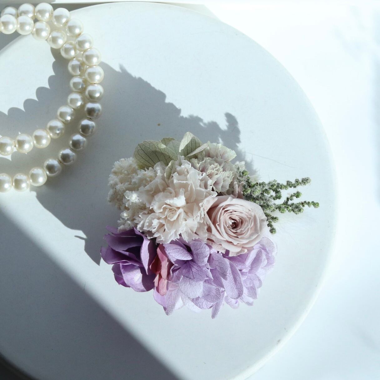 こちらはプリザーブドフラワー、ドライフラワー、アーティシャルフラワーでお作りいたします。